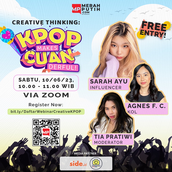 Tak perlu khawatir apabila kamu bukan kpopers, webinar ini juga menawarkan teknik strategi marketing yang bisa kamu terapkan untuk memulai bisnis. Webinar ini menghadirkan influencer dan KOL yang berpengalaman dalam mencari peluang bisnis. Sarah Ayu W, owner K-POP Merch Online Store dan Agnes Friska Cyntia, digital marketer akan berbagi pengalaman dan strategi untuk mengembangkan ide kreatif hobi k-Pop menjadi peluang bisnis.