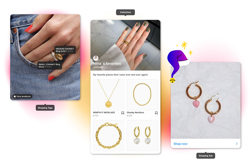 Kemudian fitur tersebut terus dikembangkan dan membuat pengguna bisa menandai produk melalui unggahan video, stories, hingga yang terkini Reels. Seiring perkembangan, Instagram bahkan telah membuat fitur check-out, sehingga pengguna bisa langsung memesan dan membayar melalui Instagram seperti di aplikasi e-commerce pada umumnya.