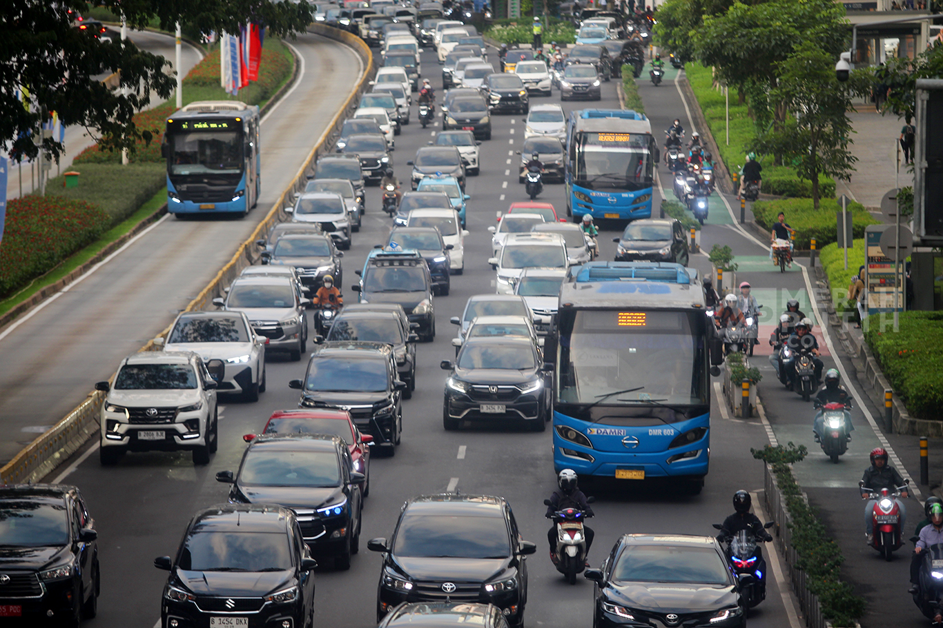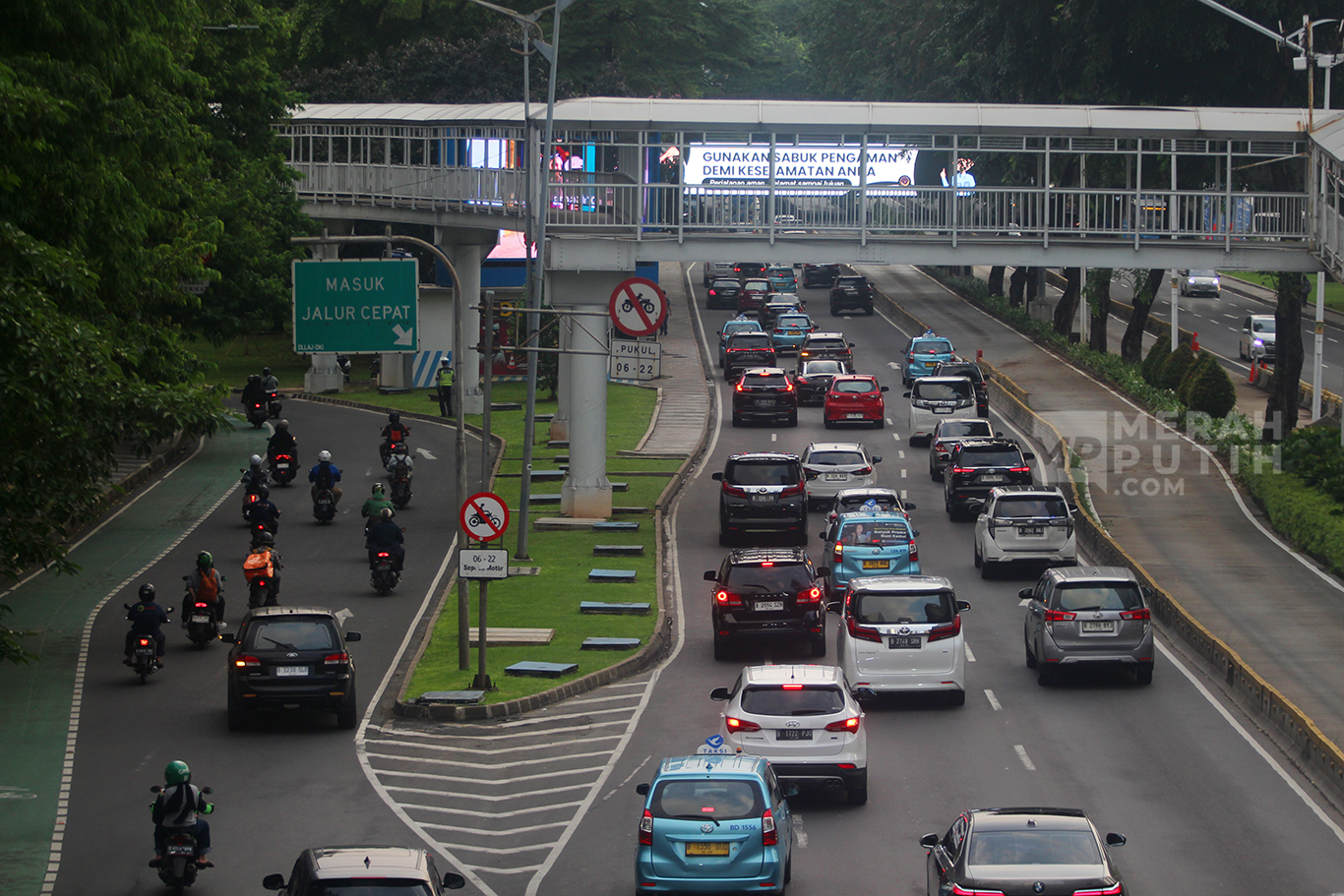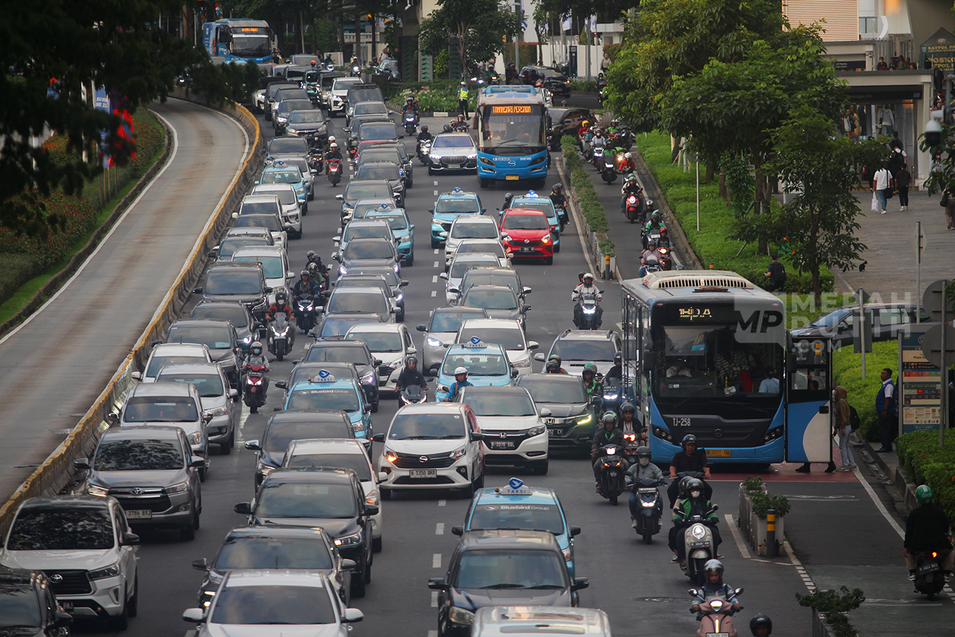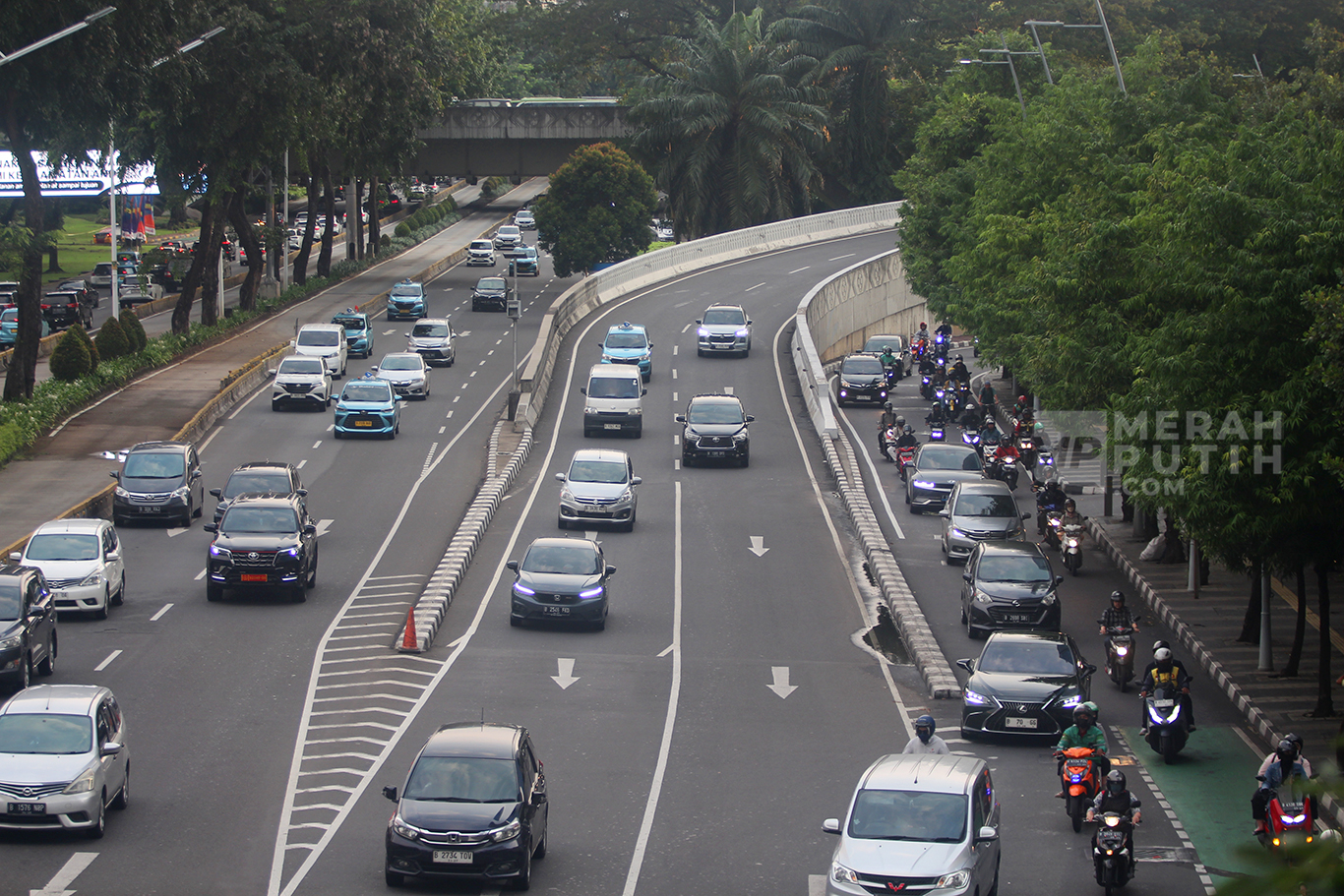 MerahPutih.com- Suasana kepadatan arus lalu-lintas kendaraan bermotor saat jam pulang kerja di Jalan Jenderal Sudirman, Bendungan Hilir, Jakarta, Jum'at (14/6/2024).