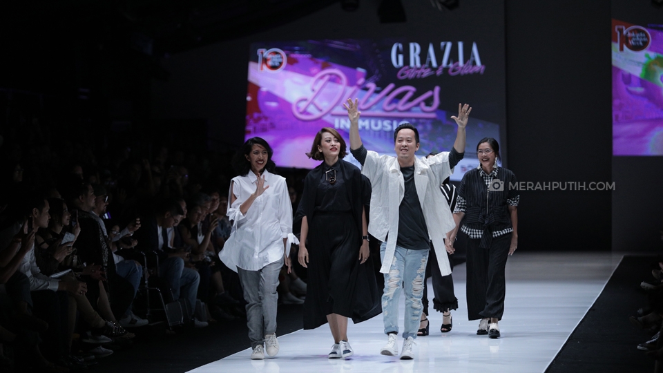 GELARAN Grazia Glitz and Glam di Jakarta Fashion Week 2018 menampilkan sejumlah koleksi hasil karya para perancang busana Indonesia. Rinda Salmun, Purana, Kleting, Luna Maya dan Cotton Ink ialah perancang yang hadir dalam ajang itu. Pada kesempatan itu, beberapa perancang busana berkolaborasi dengan Avani Eco untuk membuat busana yang ramah lingkungan. Untuk tahun ini, Grazia Glitz and Glam mengusung tema Divas in music.