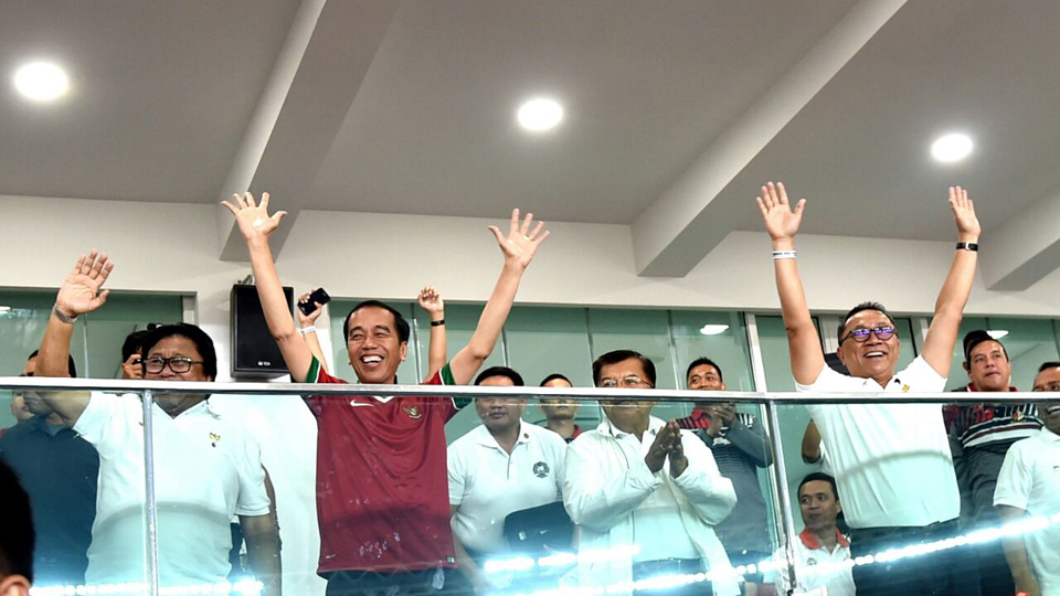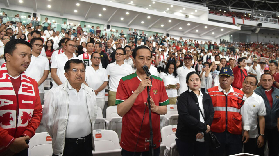 Presiden Joko Widodo meresmikan Stadion Utama Gelora Bung Karno sebelum laga pertandingan persahabatan Indonesia melawan Islandia.