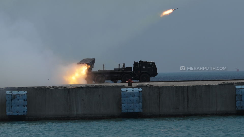 Jenderal Maruli tepat menembak jatuh drone yang disimulasikan sebagai pesawat musuh menggunakan senjata berat artileri pertahanan udara.