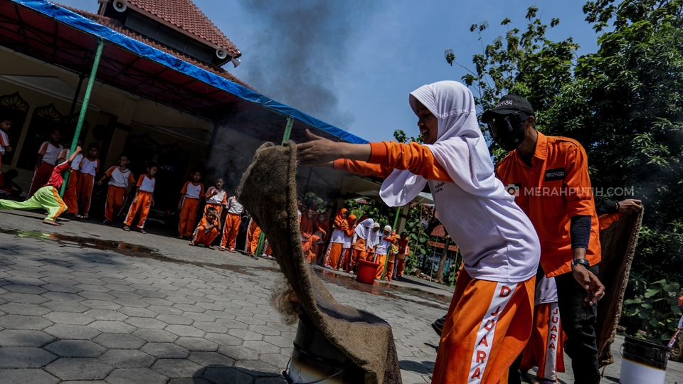 Peringati Hari Belajar di Luar Kelas, Siswa SD Berlatih Memadamkan Api