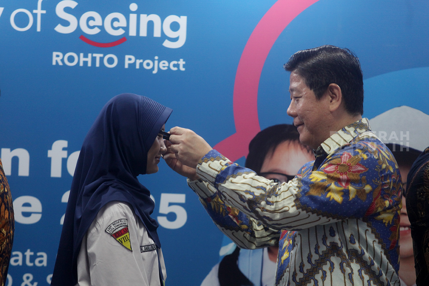 Mengusung tema “Joy of Seeing - Clear Vision for Brighter Future” 2025 Rohto berpartisipasi aktif dalam membangun “Masa Depan yang Sehat bagi Semua” (A Healthy Future for All) dengan program pembagian kacamata gratis kepada para siswa-siswi agar memiliki penglihatan yang lebih baik dan mampu belajar secara optimal dan dapat berprestasi di sekolah. (MP/Didik Setiawan).