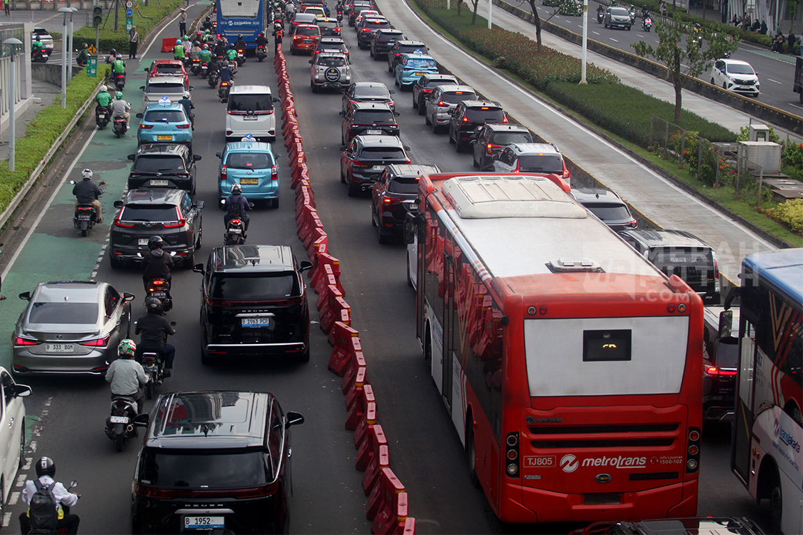 Berdasarkan data Perusahaan teknologi navigasi asal Belanda, Tomtom, Jakarta berada di posisi kelima kota termacet di Indonesia dan peringkat dunianya menurun dari peringkat ke-30 pada 2023 menjadi peringkat ke-90 pada 2024 karena peningkatan fasilitas transportasi publik. (MP/Didik Setiawan).