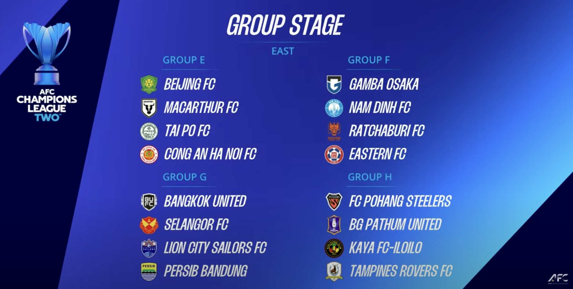 Berdasarkan hasil undian, Persib masuk ke Grup G dan akan bersaing dengan tim Asia Tenggara lain seperti Bangkok United (Thailand), Selangor FC (Malaysia), Lion City Sailors (Singapura).