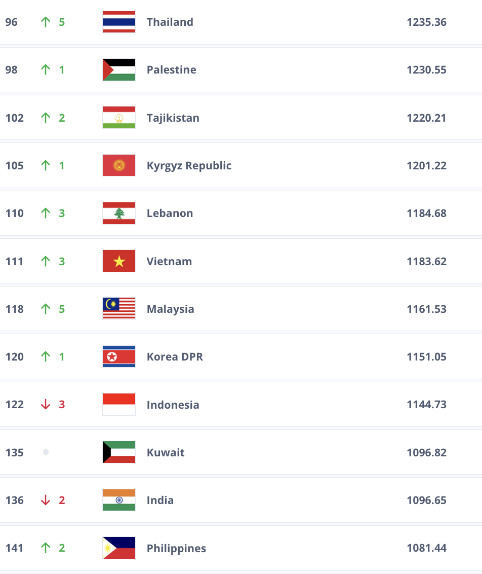 Hal ini sesuai dengan update ranking FIFA per 17 Oktober 2025.