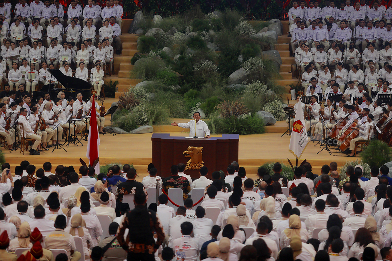 Prabowo Subianto Pimpin Apel Kader & Rapimnas Partai Gerindra di Indonesia Arena