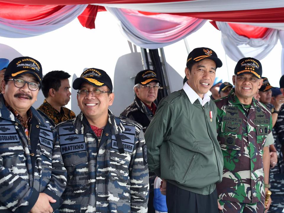 Kepala Negara didampingi Panglima TNI Marsekal TNI Hadi Tjahjanto, Kasal Laksamana TNI Siwi Sukma Adji dan Kasau Marsekal TNI Yuyu Sutisna dan Wakasad Letjen TNI Tatang Sulaiman. Sementara Kasad Jenderal TNI Mulyono memimpin HUT TNI di Merauke, Papua.