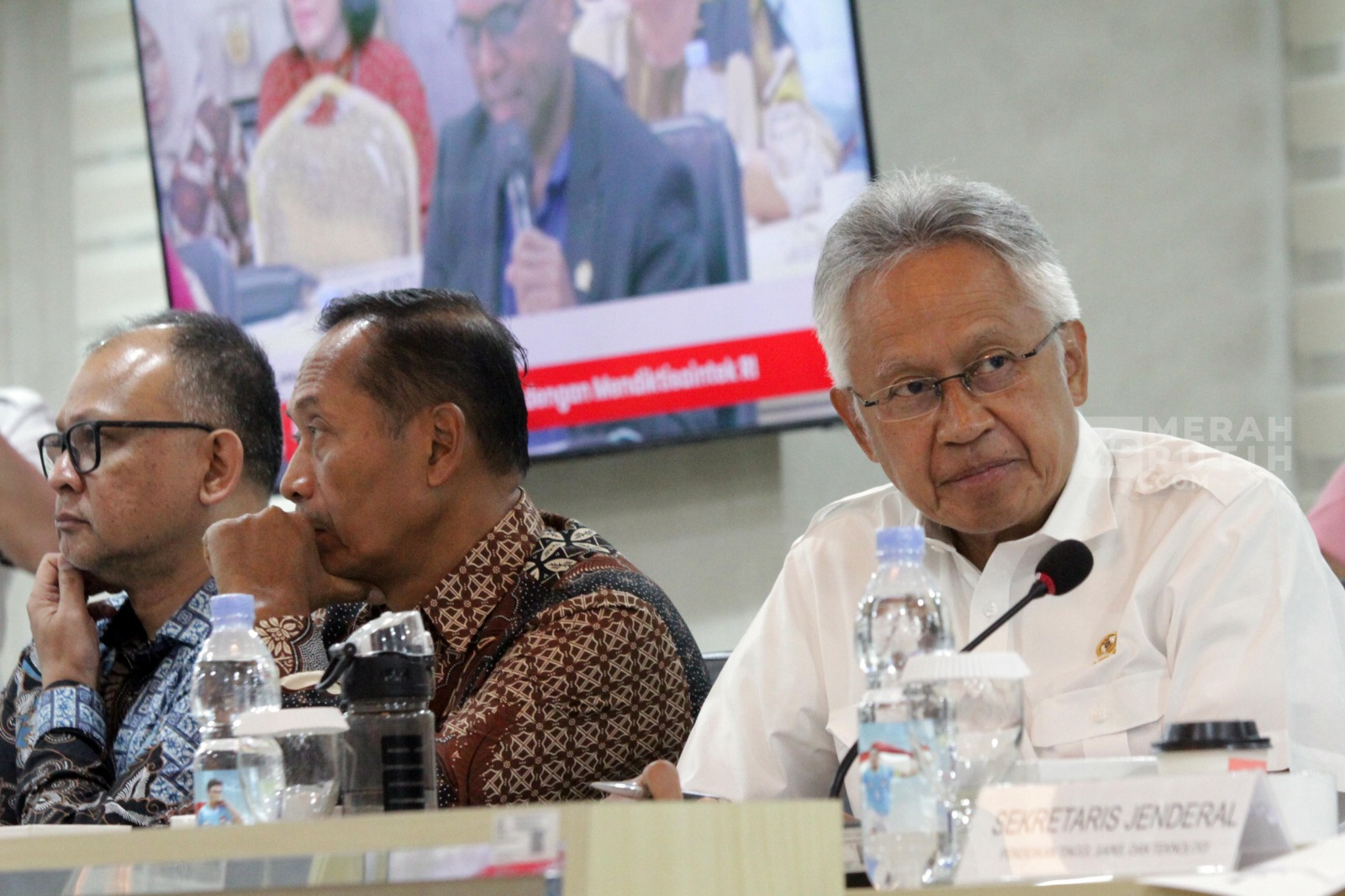 Merahputih.com - Menteri Pendidikan Tinggi, Sains, dan Teknologi (Mendiktisaintek) Satryo Soemantri Brodjonegoro saat mengikuti rapat kerja dengan Komite III DPR RI di Kompleks Parlemen, Senayan, Jakarta, Selasa (3/12/2024).