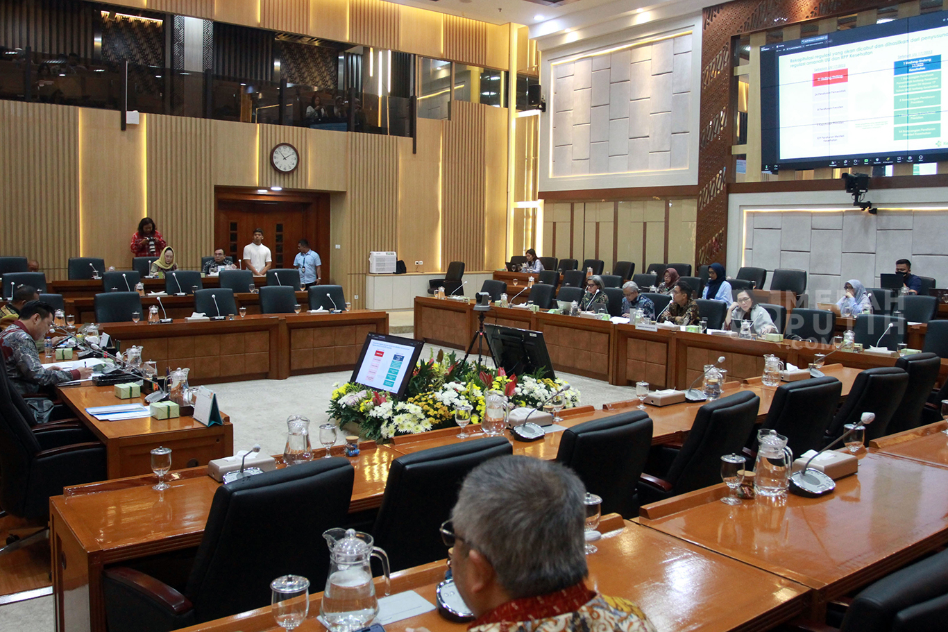 MerahPutih.com- Menteri Kesehatan Budi Gunadi Sadikin saat menyampaikan paparan dalam rapat kerja (Raker) dengan Komisi IX DPR di Kompleks Parlemen, Senayan, Senin (8/7/2024). Raker yang dipimipin langsung oleh Wakil Ketua Komisi IX DPR Charles Honoris serta didampingi oleh Wakil Ketua Komisi IX DPR Emmanuel Melkiades Laka Lena bersama Menteri Kesehatan Budi Gunadi Sadikin. Raker tersebut membahas tentang perkembangan Peraturan Pelaksanaan Undang-Undang Nomor 17 Tahun 2023 tentang kesehatan.