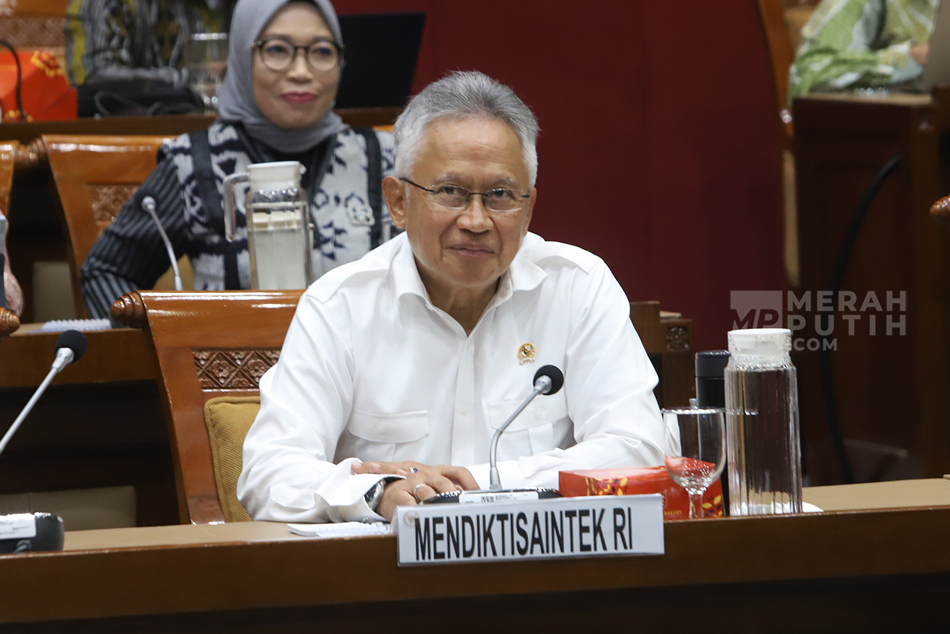 Merahputih.com - Menteri Pendidikan Tinggi, Sains dan Teknologi (Mendiktisaintek) Satryo Soemantri Brodjonegoro dan Wamendiktisaintek Stella Christie mengikuti rapat kerja dengan Komisi X DPR di Kompleks Parlemen, Senayan, Rabu (6/11/2024).
