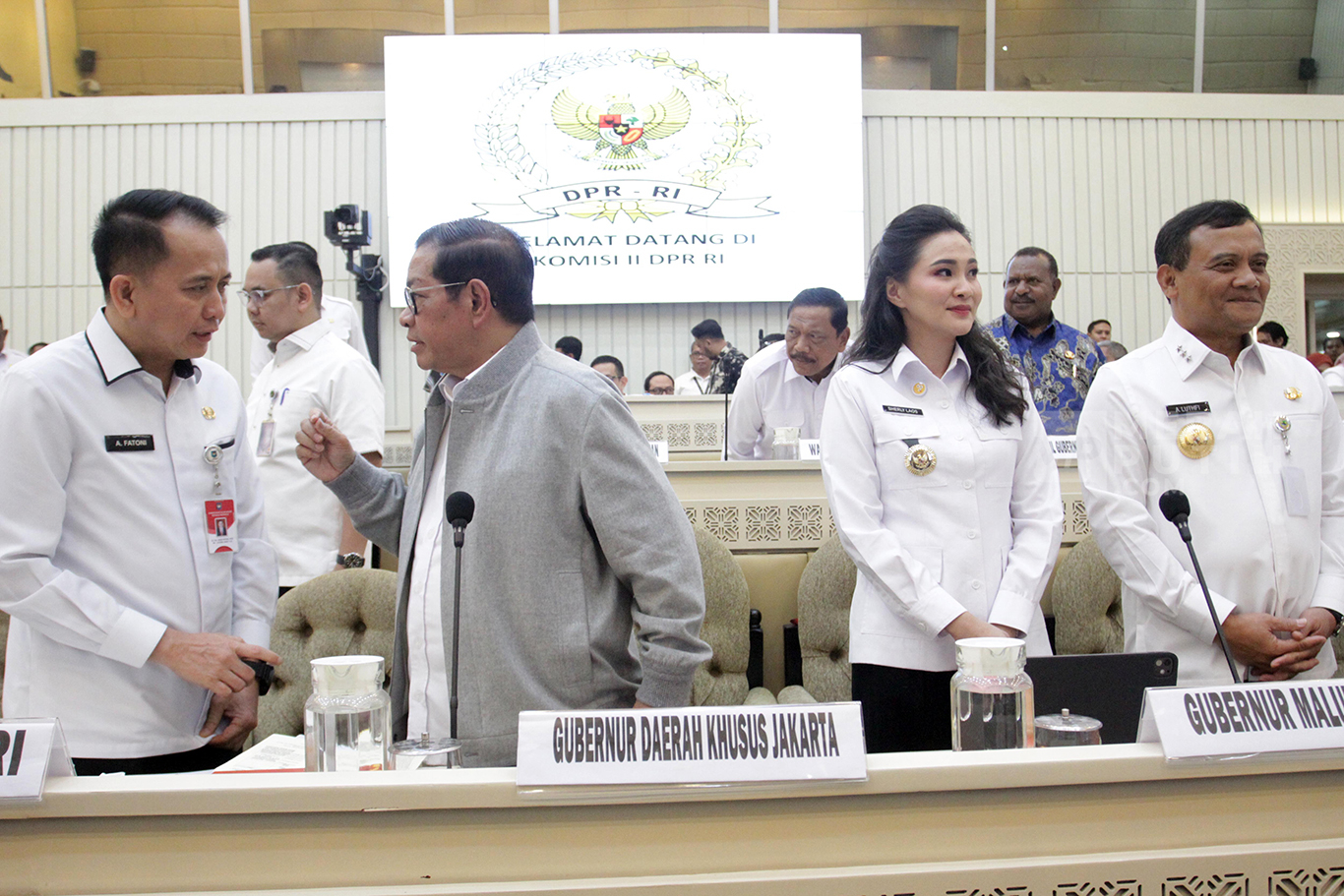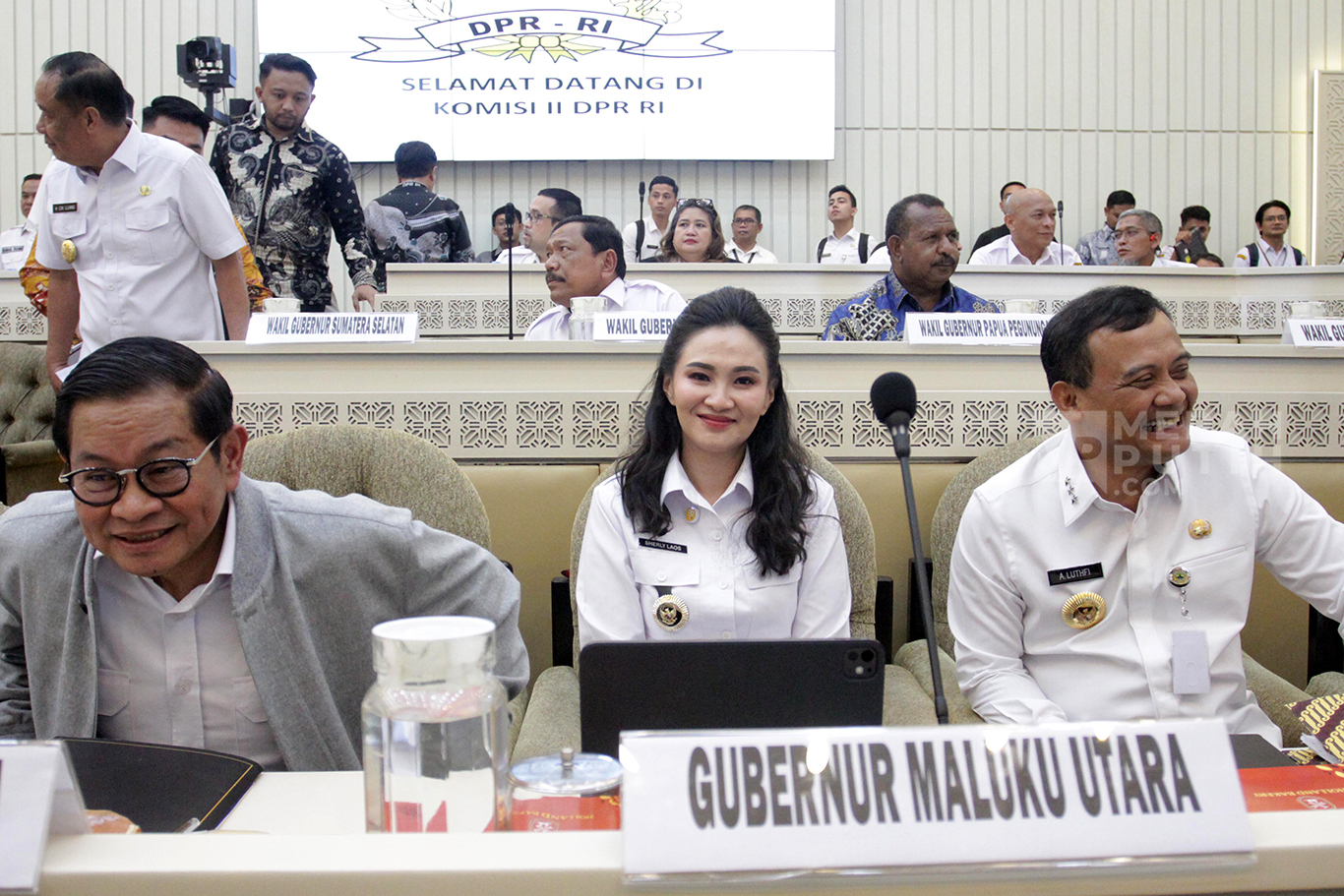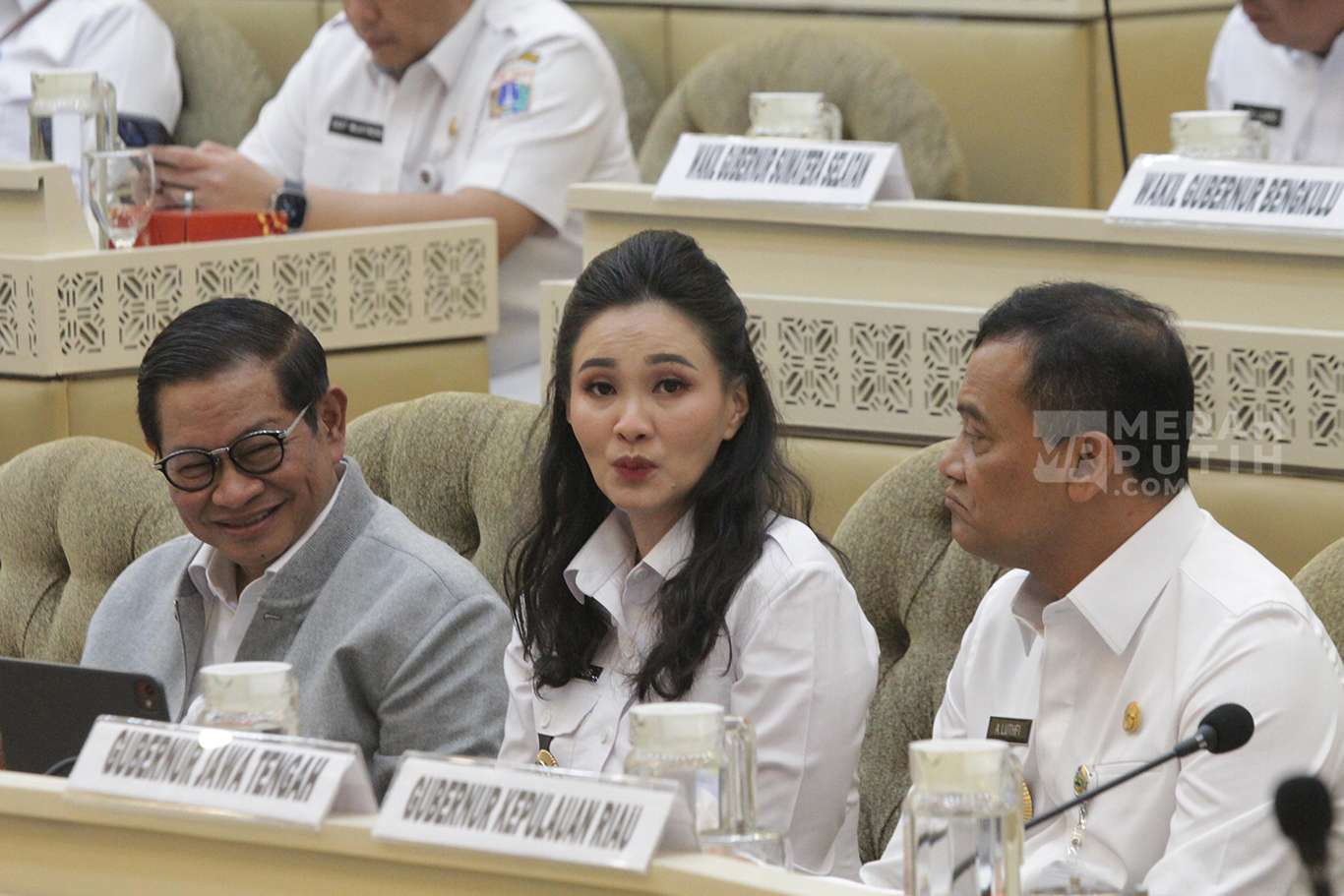 Merahputih.com - Wakil Menteri Dalam Negeri (Wamendagri) Ribka Haluk, Gubernur DKI Jakarta Pramono Anung, Gubernur Maluku Utara Sherly Tjoanda Laos dan Gubernur Jawa Tengah Ahmad Luthfi, mengikuti Rapat Dengar Pendapat (RDP) Komisi II DPR di Kompleks Parlemen, Senayan, Jakarta, Rabu (30/4/2025).