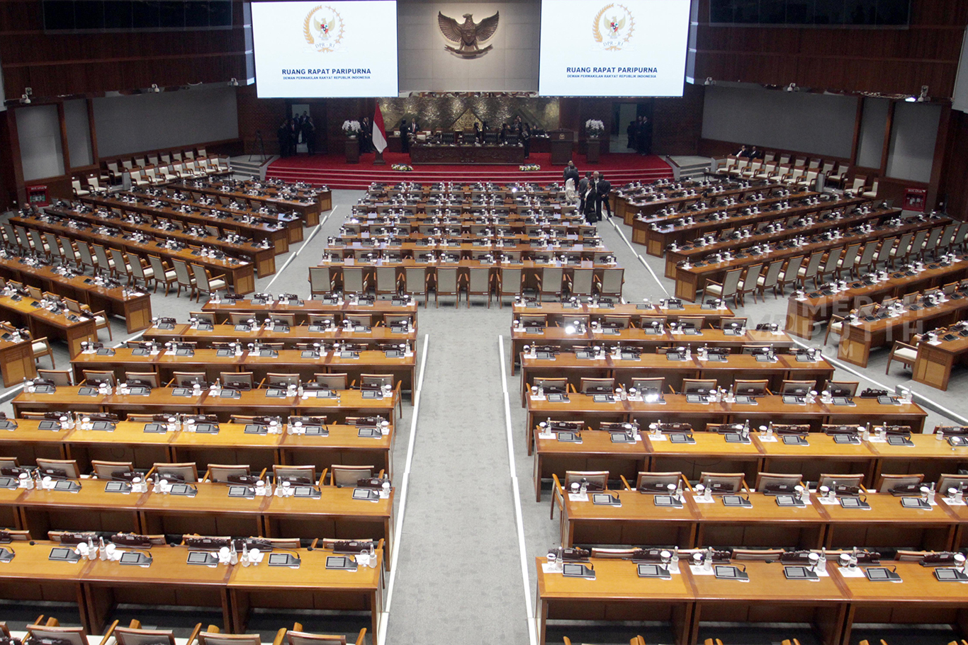 MerahPutih.com - Kursi-kursi kosong terlihat saat sidang paripurna di Gedung Parlemen, Jakarta, Kamis (22/8/2024).