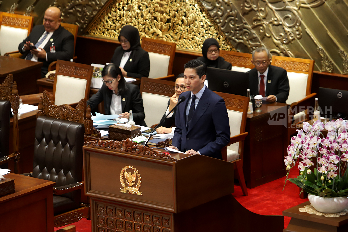 Rapat Paripurna DPR ke-21 Masa Persidangan V Tahun Sidang 2023-2024 membahas 11 agenda diantaranya Pengambilan Keputusan atas RUU tentang Perubahan Atas Undang-Undang Nomor 5 Tahun 1990 Tentang Konservasi Sumber Daya Alam Hayati (SDA) dan Ekosistemnya, Pengambilan Keputusan atas 26 RUU tentang Kabupaten/Kota, dan pendapat fraksi-fraksi terhadap Usul Hak Angket tentang Pengawasan Haji.