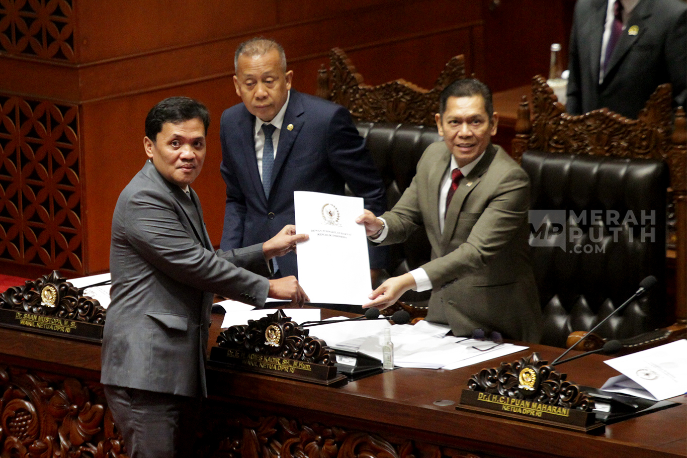 Rapat Paripurna DPR menyetujui hasil uji kelayakan dan kepatutan calon Hakim Mahkamah Konstitusi Inosentius Samsul oleh Komisi III DPR.