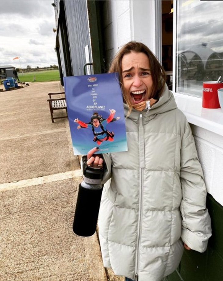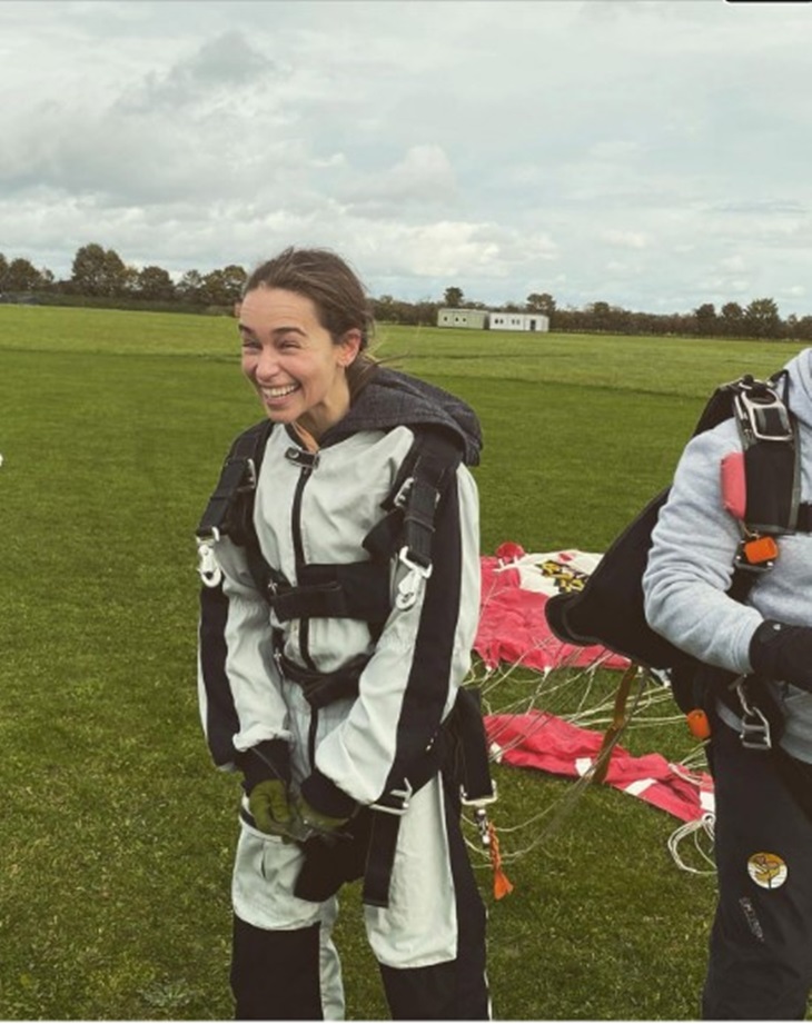 Emilia Clarke merayakan ulang tahunnya ke 34 dengan terjun payung. (Foto Instagram@emilia_clarke)