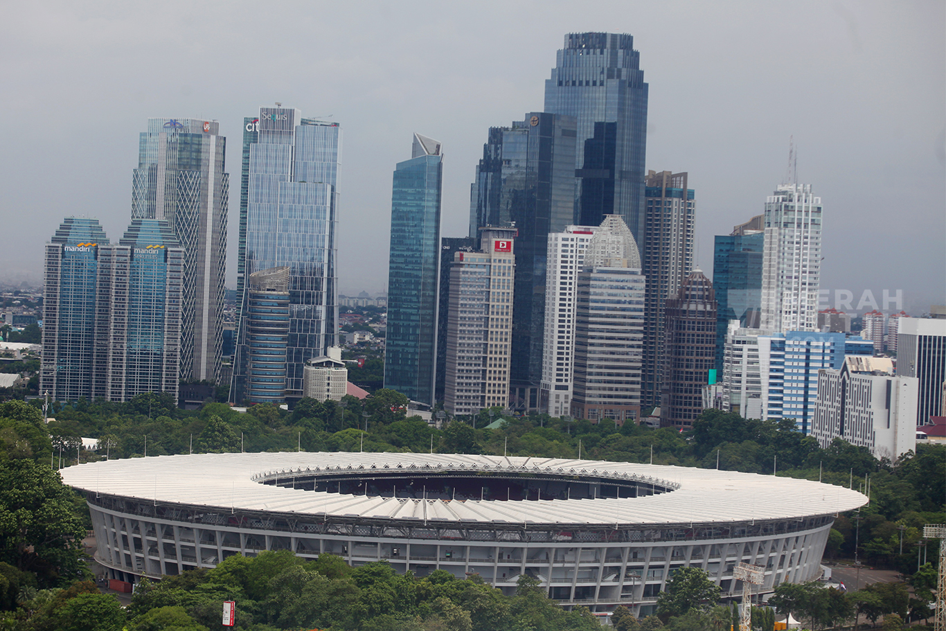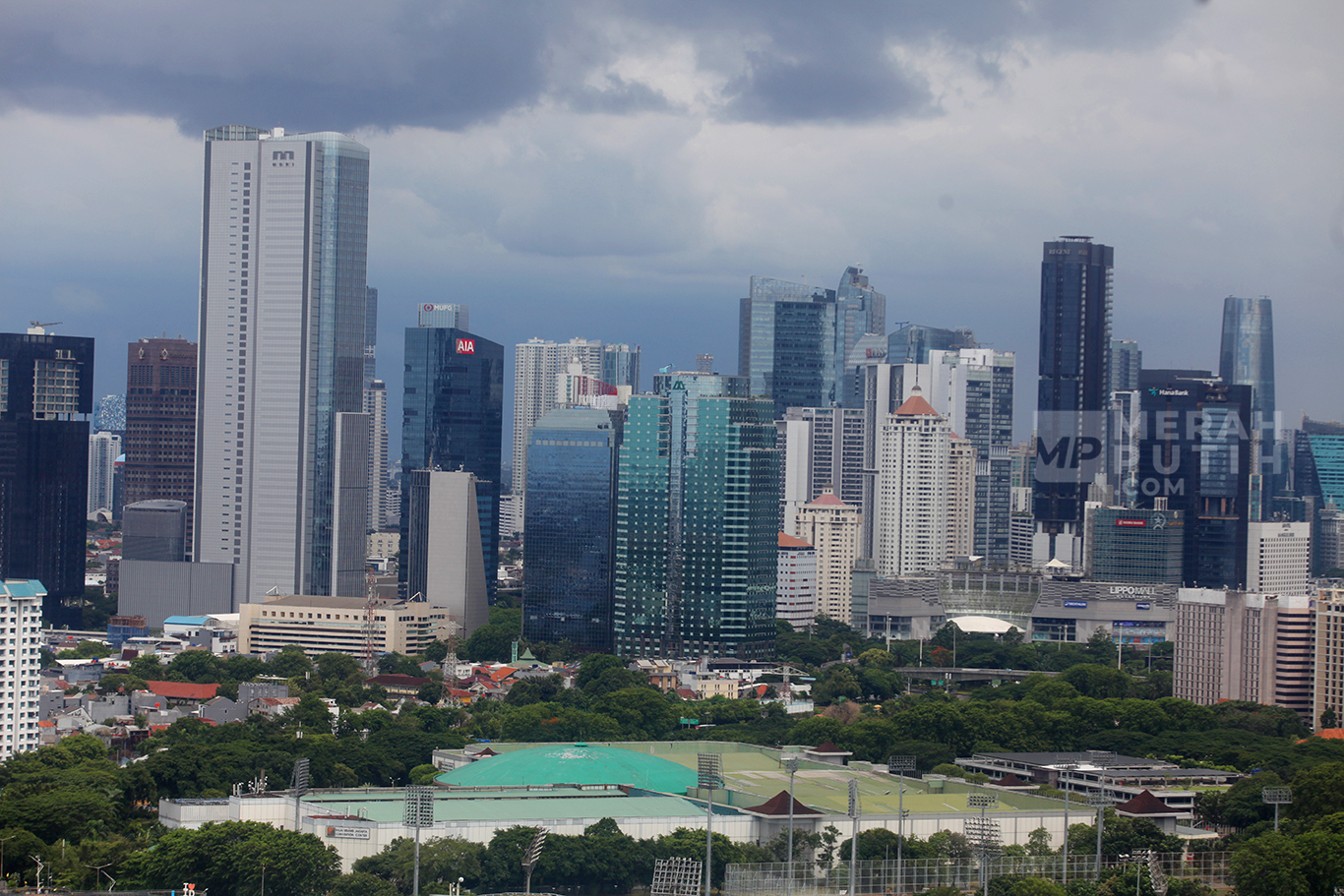 Merahputih.com - Suasana pembangunan gedung perkantoran di Kawasan Palmerah, Jakarta Barat, Kamis (23/10/2025).