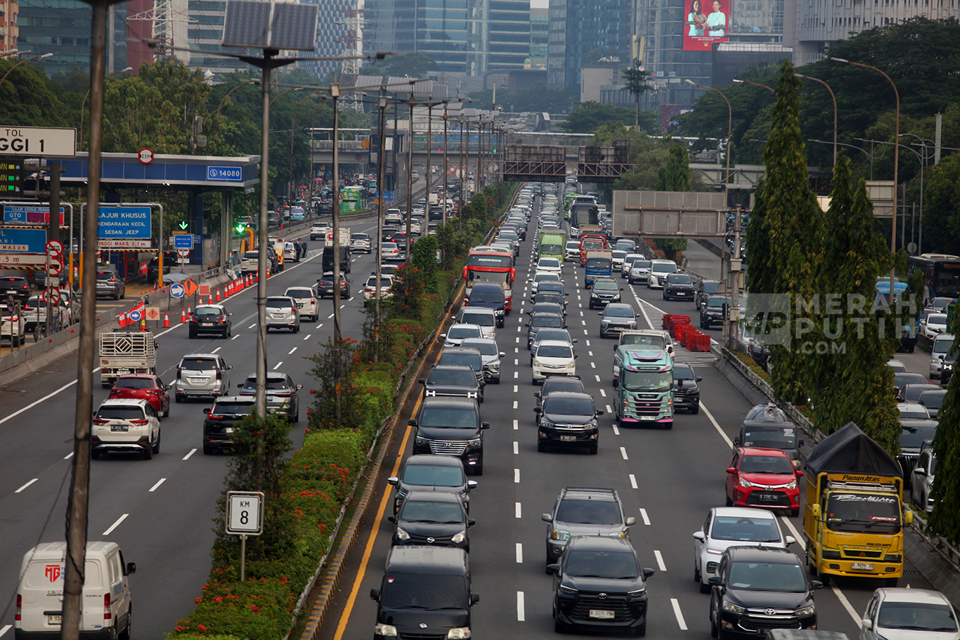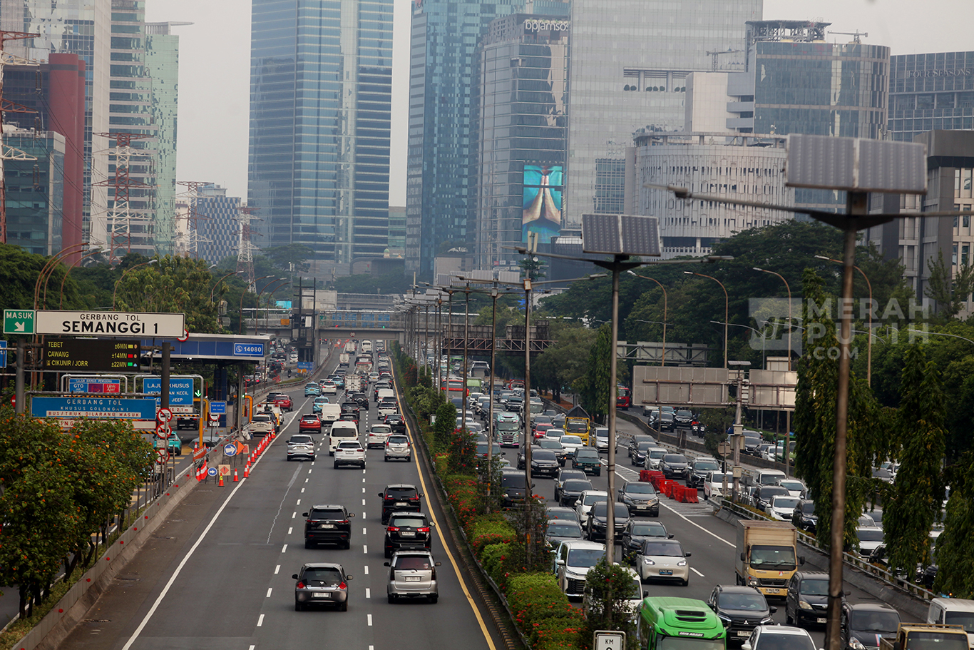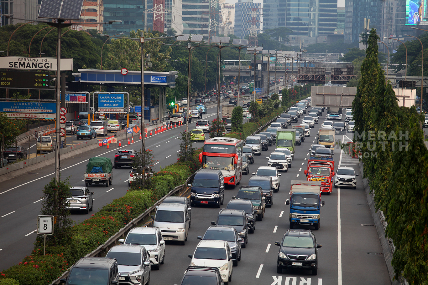 Merahputih.com - Suasana kendaraan melintasi Jalan Tol Dalam Kota, Kawasan Semanggi, Jakarta, Rabu (8/10/2025).