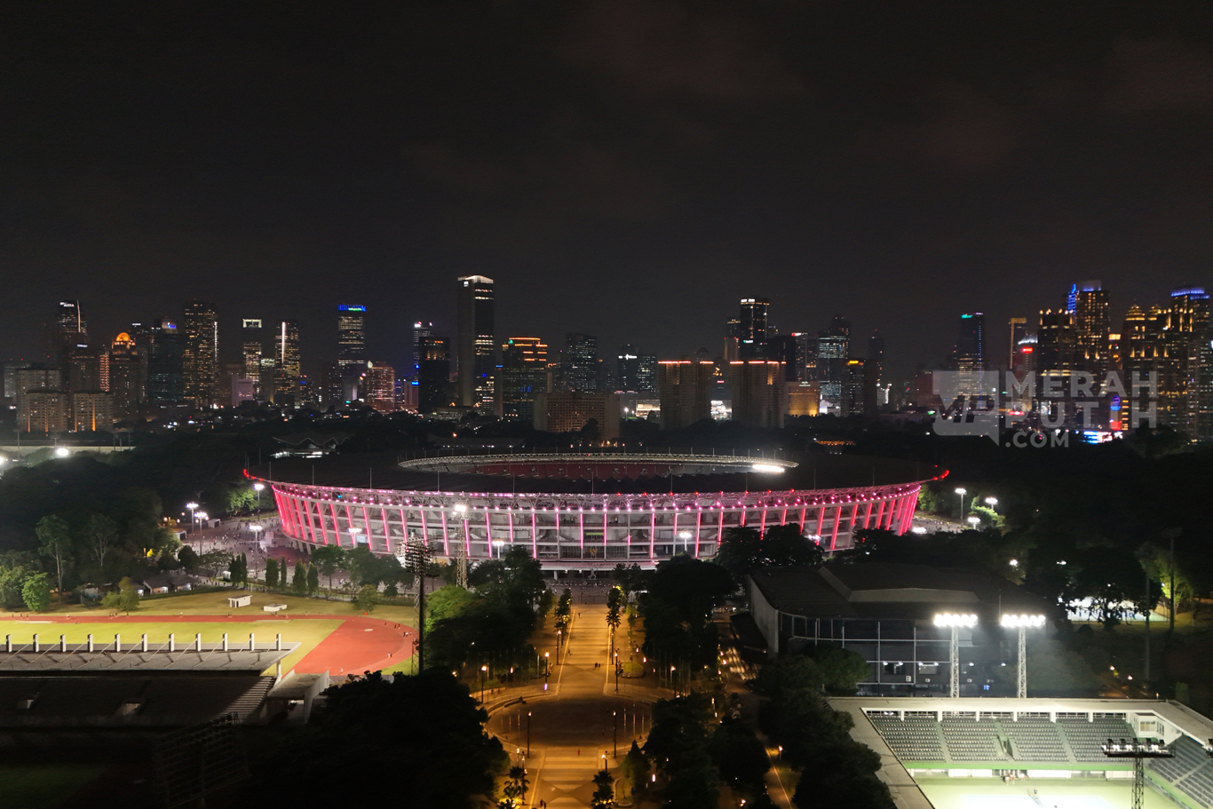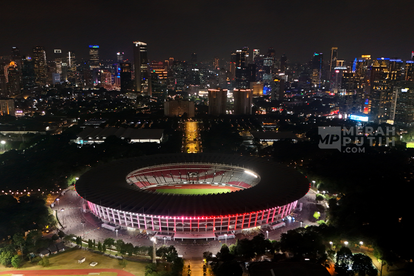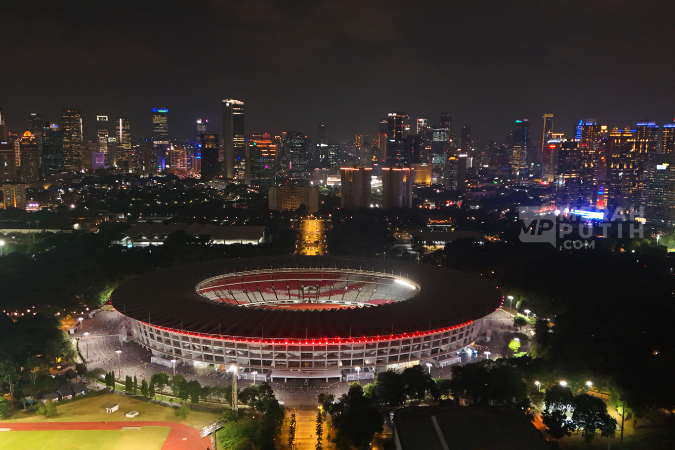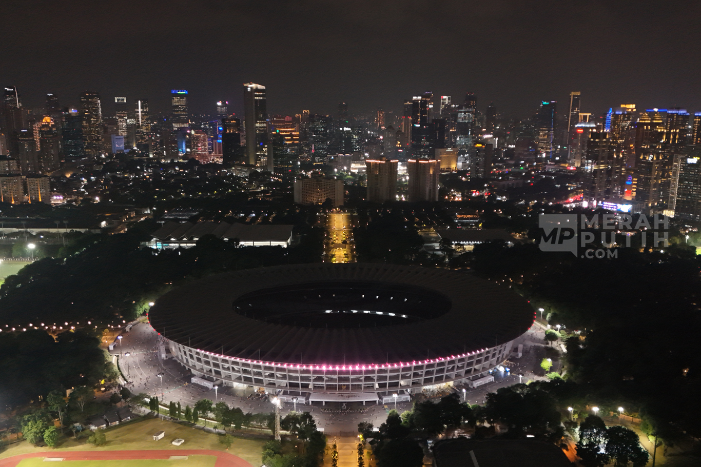 Merahputih.com - Suasana malam hari gedung pencakar langit kawasan perkantoran SCBD dan Stadion Utama Gelora Bung karno Jakarta (SUGBK) di Kawasan Senayan, Jakarta, Kamis (16/10/2025).
