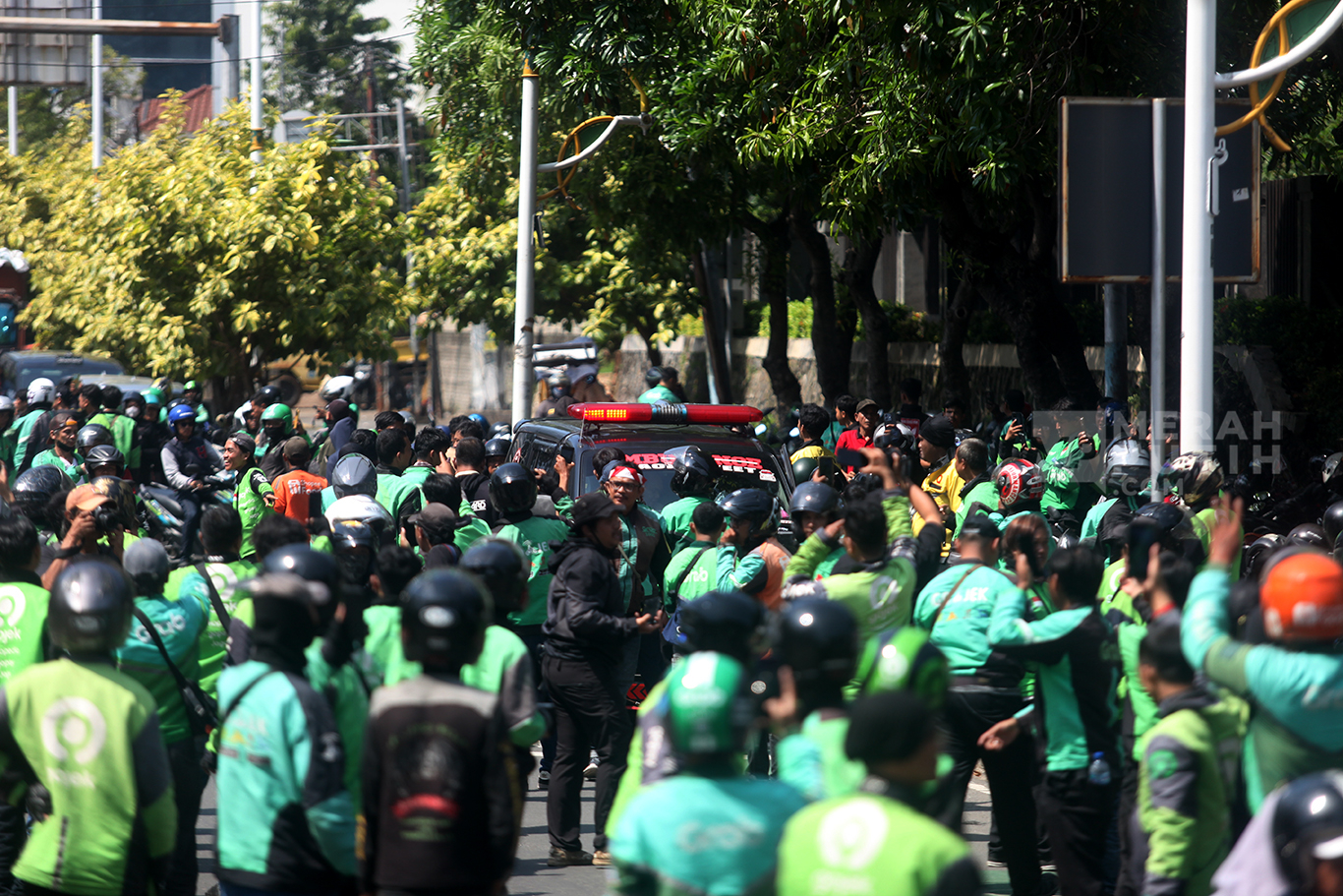 Ribuan pengemudi ojek online mengantarkan mobil jenazah Affan Kurniawan ke peristirahatan yang terakhri di TPU Karet Bivak, Jakarta. Affan Kurniawan driver ojol yang meninggal dunia usai terlindas mobil rantis Brimob saat Aksi 28 Agustus yang berakhir ricuh.