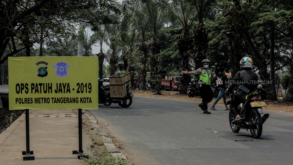 Unit Satuan Lalu Lintas (Satlantas) Polres Metro Tangerang Kota menggelar Operasi Patuh Jaya 2019 di jalan Juanda, Neglasari, Kota Tangerang, (3/9/2019). Pada hari keenam pelaksanaan Operasi Patuh Jaya 2019 Satlantas Polres Metro Tangerang Kota sudah mendapatkan lebih dari 5000 pelanggaran lalu lintas. Polda Metro Jaya menggelar operasi tersebut bertujuan untuk meningkatkan kepatuhan masyarakat dalam berlalu lintas. Operasi tersebut dilaksanakan selama 14 hari sejak tanggal 29 Agustus hingga 11 September 2019. Merahputih.com / Rizki Fitrianto