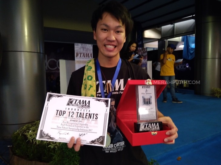 Rikiya melintasi Lobby Lounge dengan santai, menggendong tas dan menggenggam dua pucuk stick drum pagi itu. Saya memanggilnya dengan nada akrab "Rikiya Nakamoto!" pekik saya, Sabtu (15/10).