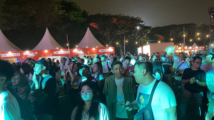 Penonton bersorak ketika tiba waktunya Rizky Febian naik ke atas panggung. Dentuman drum dan alunan bass seketika memecahkan sorakan penonton, meski mereka bersorak kembali saat Rizky keluar dari belakang panggung.