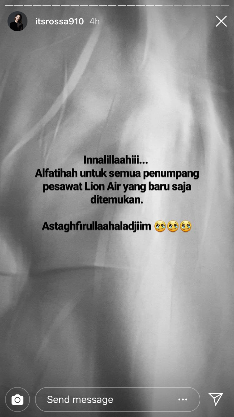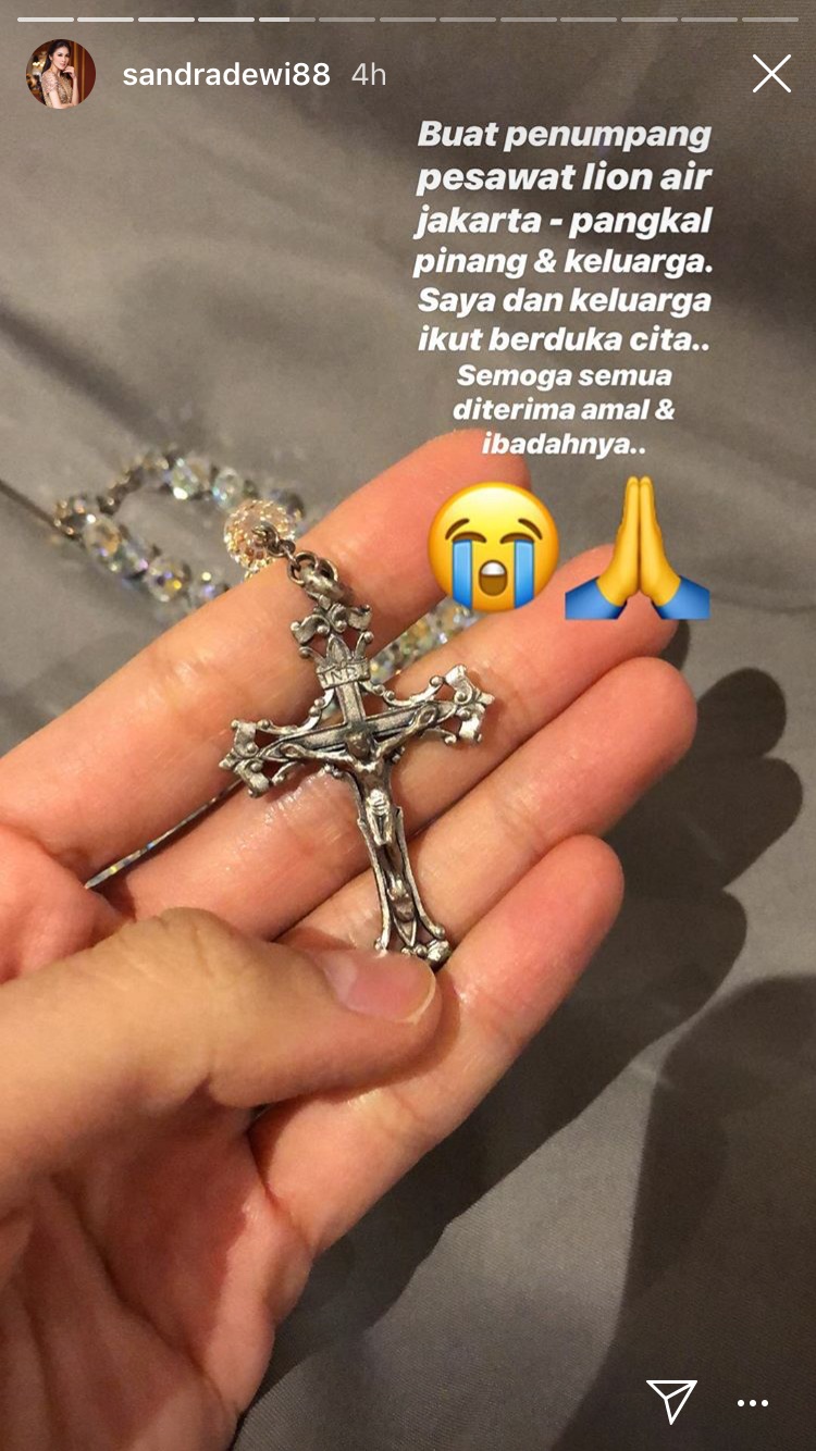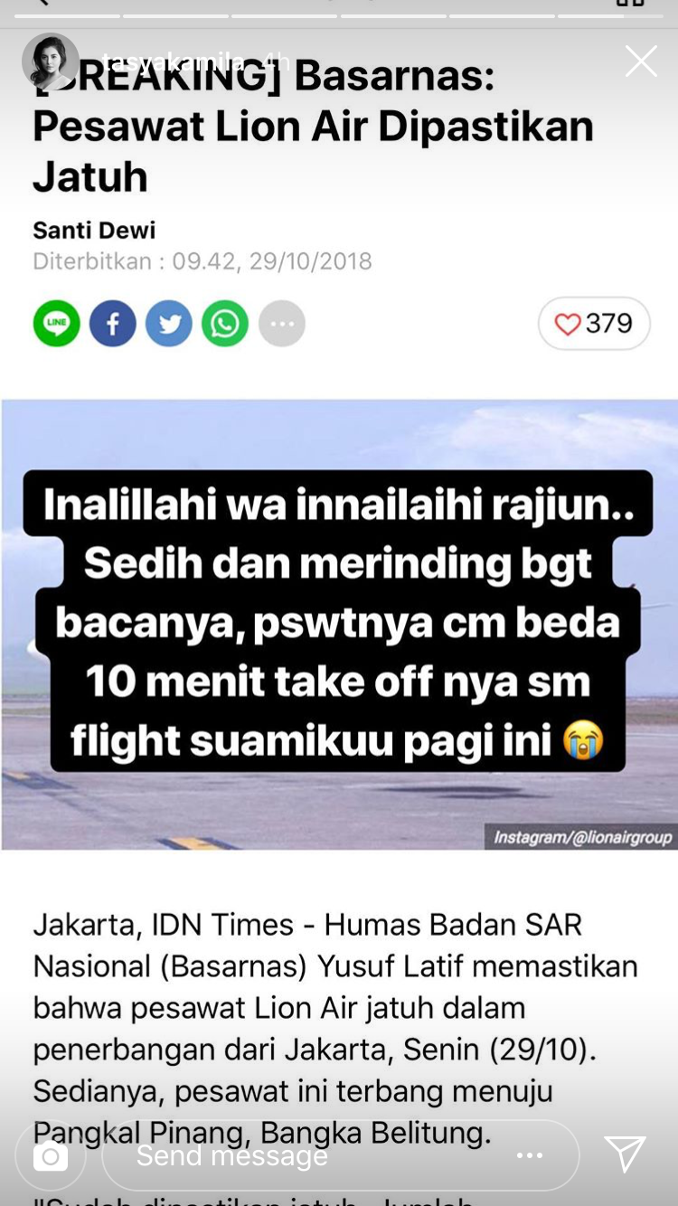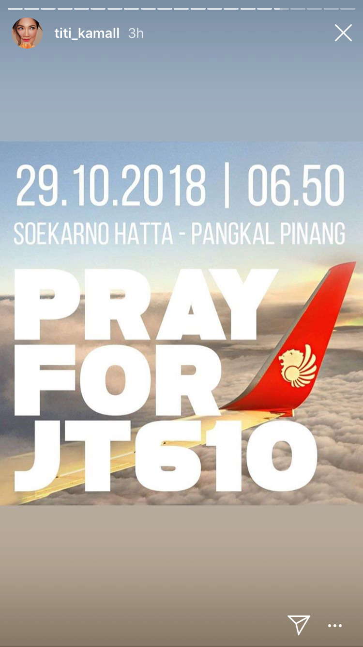 Mendengar peristiwa jatuhnya pesawat Lion Air JT10 itu, para selebritas tanah air pun mengungkapkan rasa belasungkawa mereka lewat media sosialnya masing-masing, khususnya lewat instagram story.