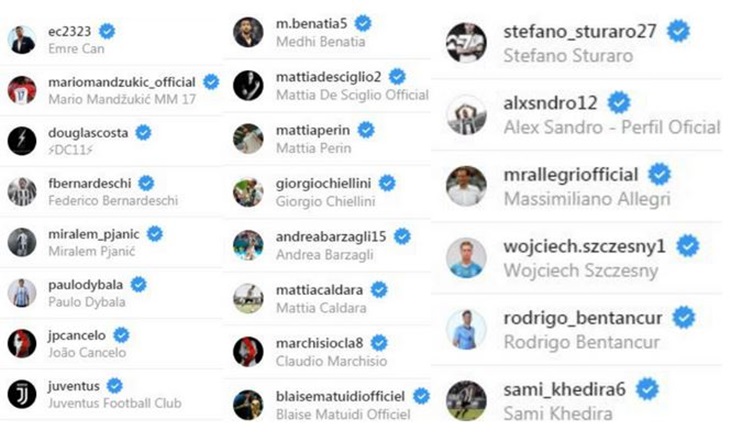 Selain itu, pemain yang sudah pensiun dari timnas Portugal juga masih menjalin pertemanan di Instagram dengan mantan rekan setimnya. Terlihat juga akun-akun baru yang menjadi teman Ronaldo di Instagram setelah bergabung dengan Juventus. Di antaranya akun resmi Juventus dan beberapa pemainnya seperti Giorgino Chiellini, Mario Mandzukic, dan tentu pelatih barunya, Massimiliano Allegri.