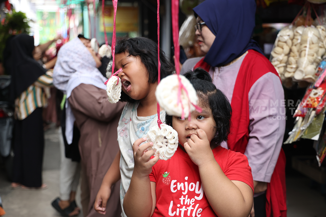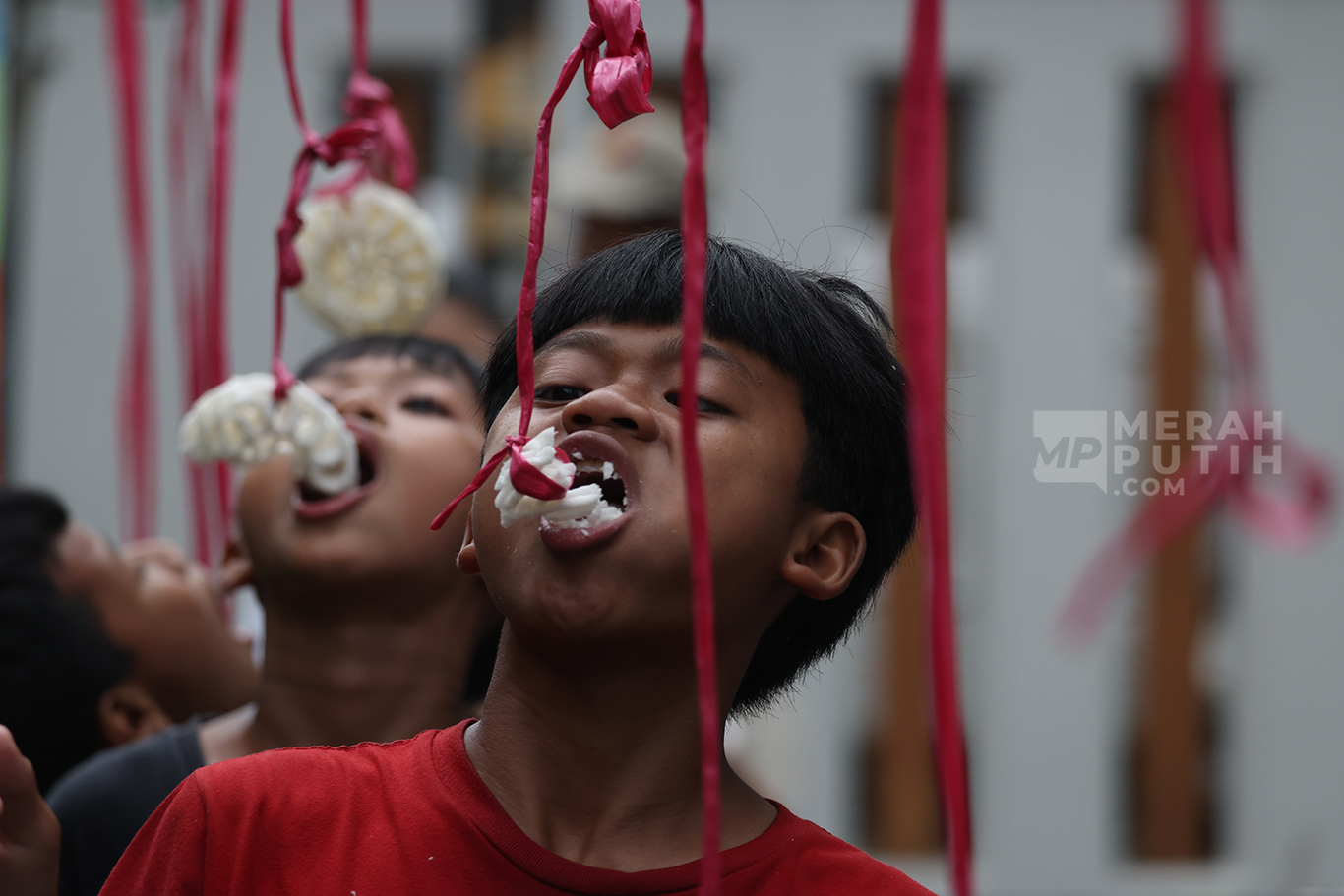 Merahputih.com - Aksi anak-anak mengikuti Lomba Makan Kerupuk memperingati HUT Ke-80 Kemerdekaan RI di Kebayoran Lama, Jakarta Selatan, Senin (18/8/2025).