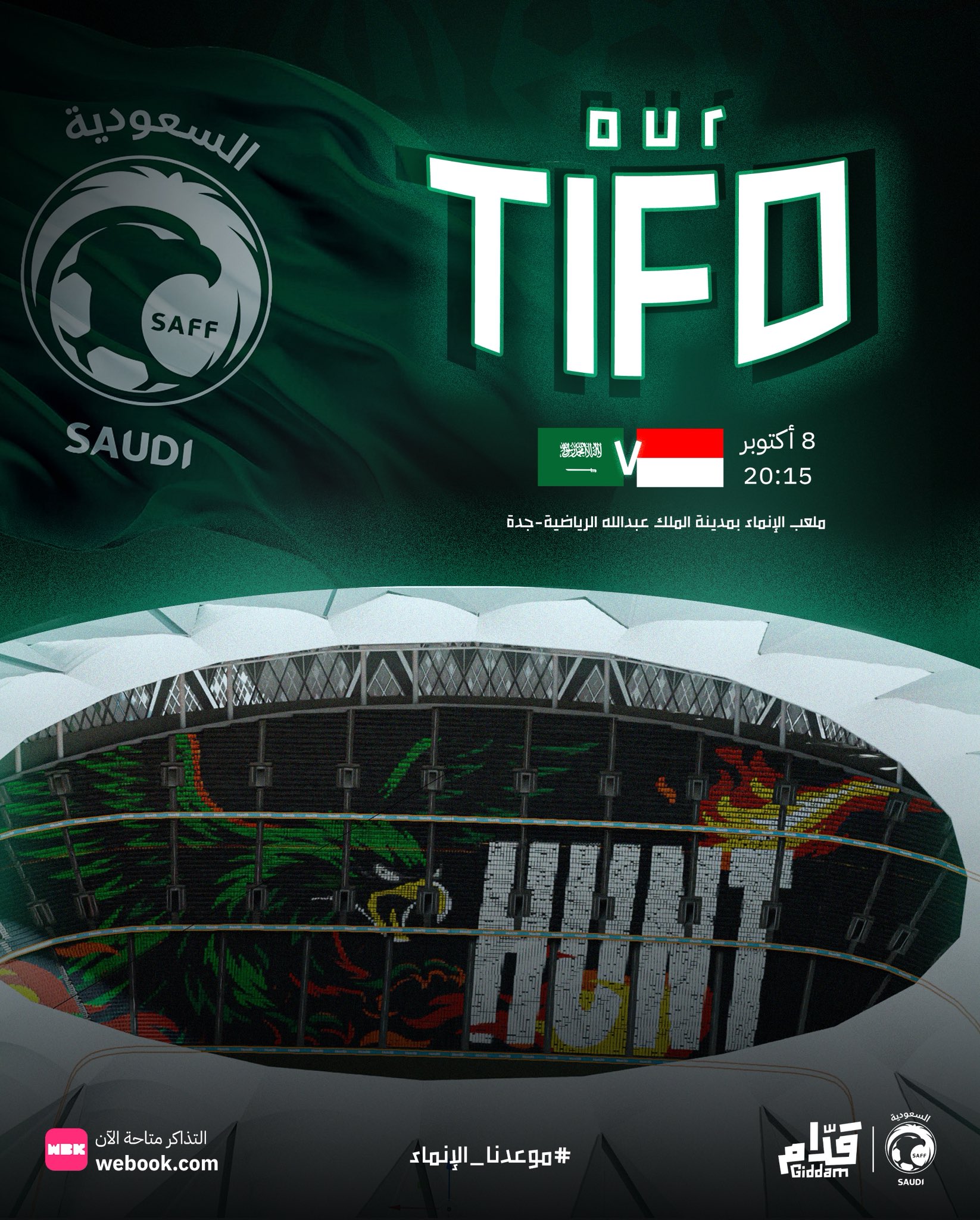 Seperti yang dilaporkan Alyaum, suporter Arab Saudi yang tergabung dalam Dewan Pendukung Tim Nasional Saudi telah mempersiapkan tifo yang akan dikoreografikan di tribun saat Timnas Arab Saudi menghadapi Indonesia di Stadion King Abdullah Sports City, Jeddah, Rabu (8/10) malam waktu setempat atau Kamis (9/10) dini hari WIB.