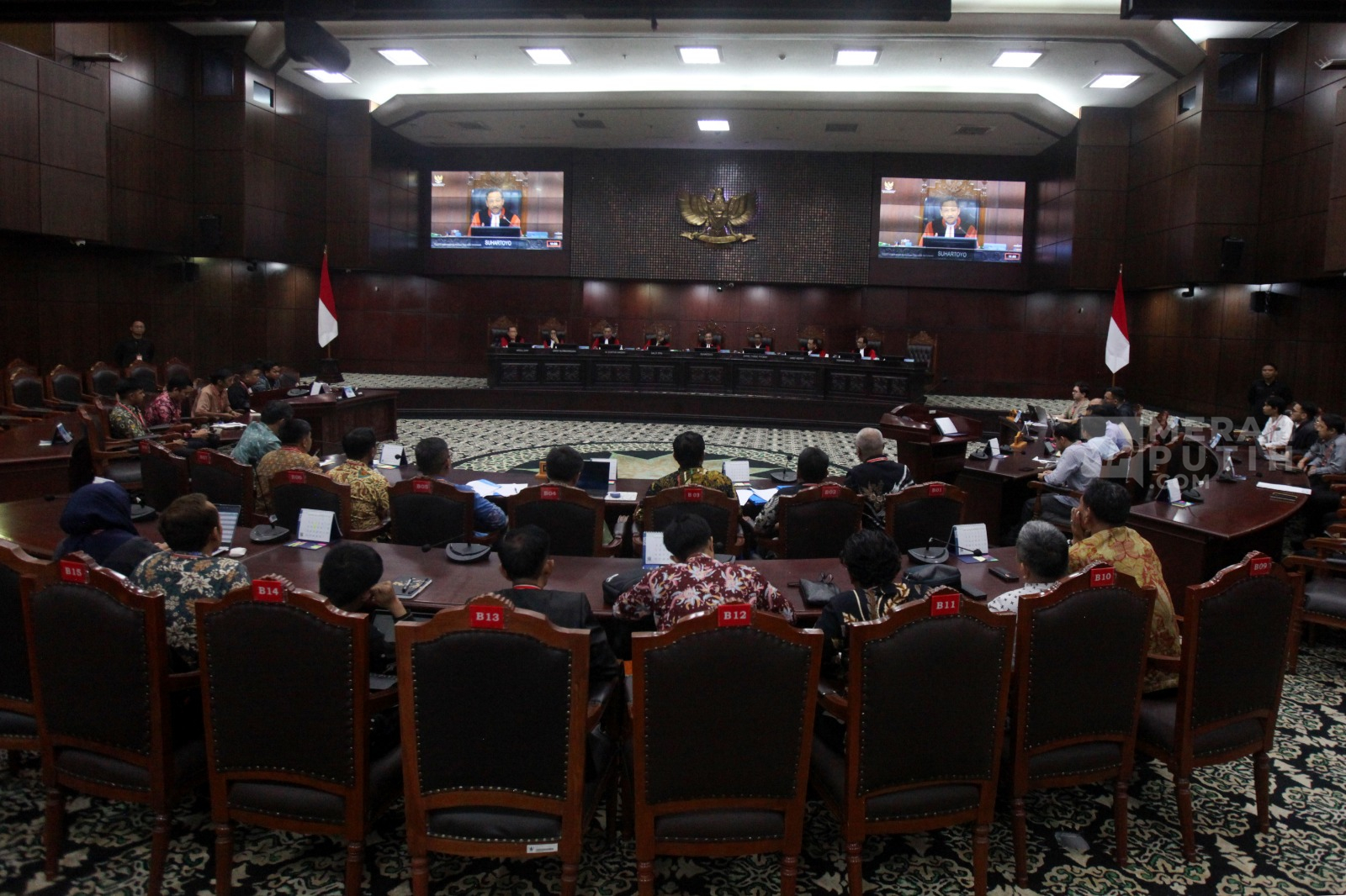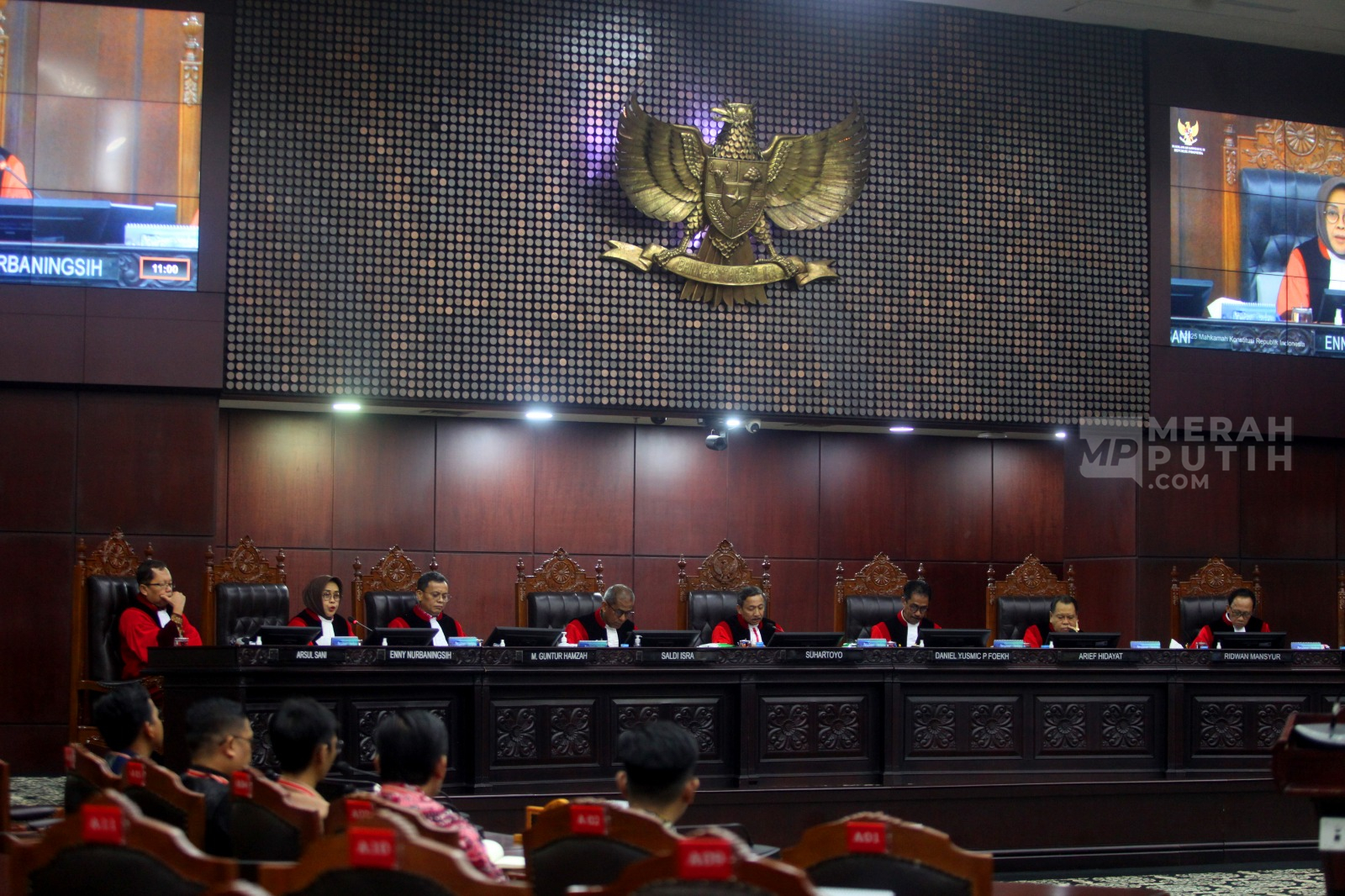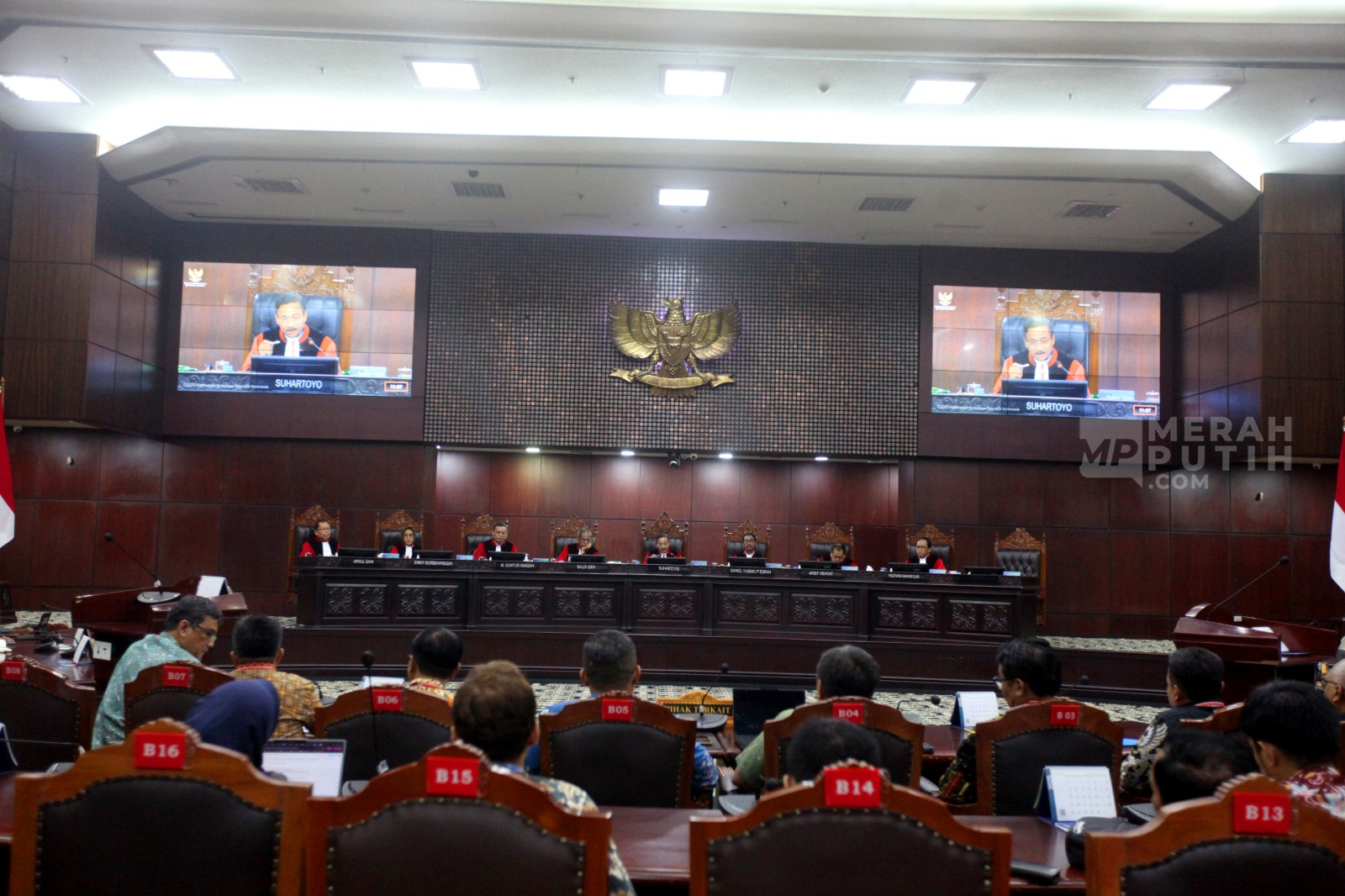 Merahputih.com - Suasana sidang uji materi terhadap Undang-Undang (UU) tentang Pers di Gedung MK, Jakarta, Selasa (21/10/2025).