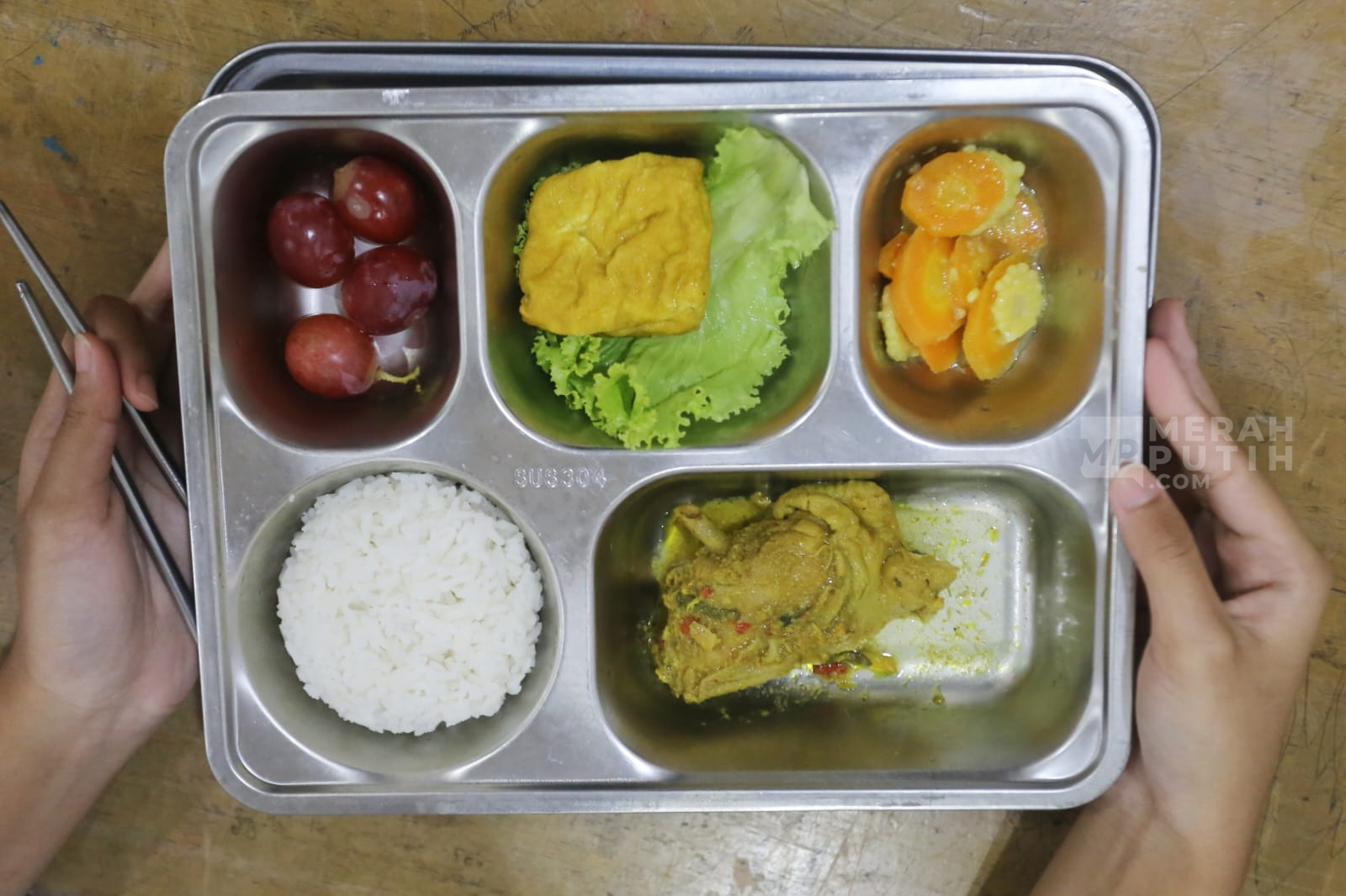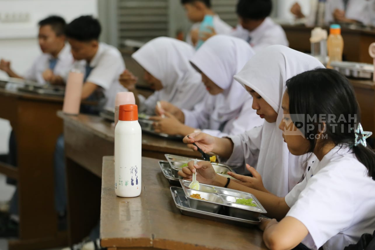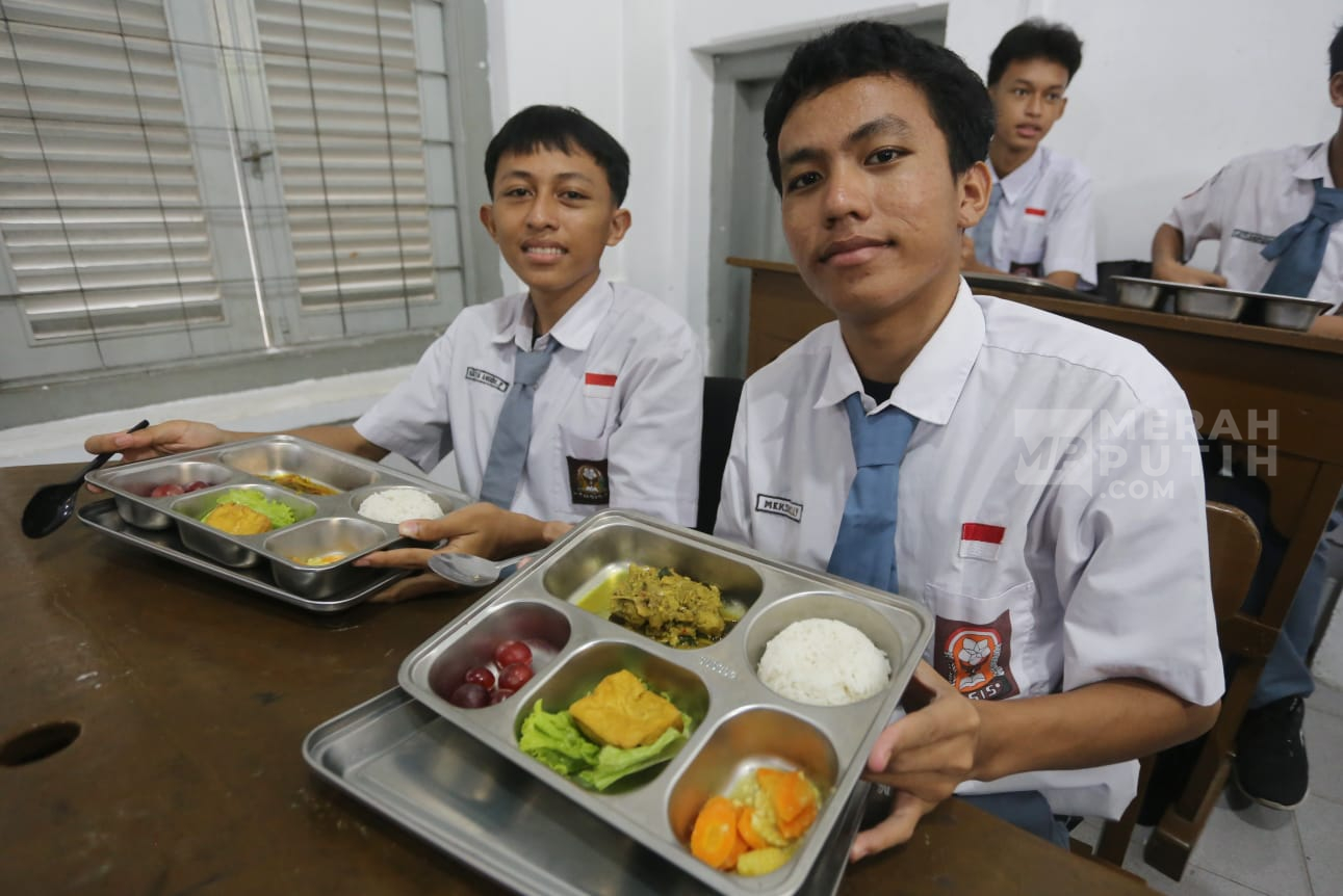 Merahputih.com - Siswa menunjukkan menu Makan Bergizi Gratis (MBG) perdana di tahun 2026 di SMK Negeri 1 Jakarta, Jl. Budi Utomo, Pasar Baru, Jakarta Pusat, Kamis (8/1/2026).