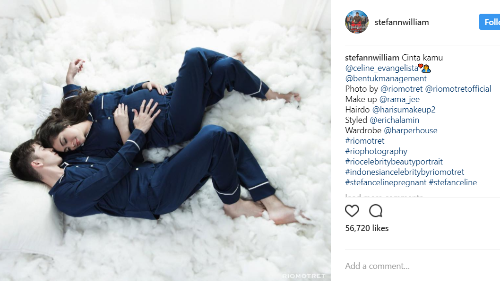 Dalam foto yang diunggah Stefan di akun Instagramnya @stefannwilliam, dua sejoli ini tampak begitu mesra. Keduanya berpose memegang calon bayi yang tengah ada dalam kandungan Celine. Stefan pun terlihat mencium kening sang istri.