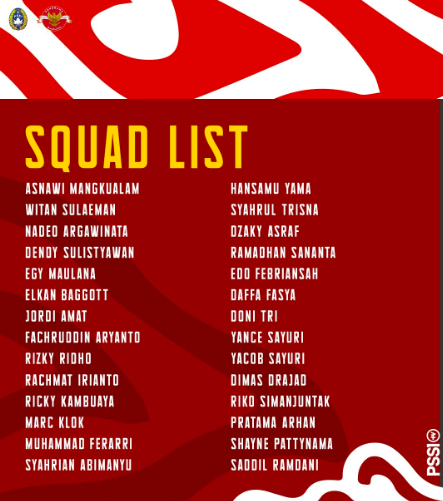 Dalam daftar tersebut, tercantum nama Shayne Pattynama. Pemain naturalisasi itu memiliki kans debut bersama Tim Merah Putih karena proses perpindahan federasinya dari Belanda (KNVB) ke Indonesia (PSSI) sudah disetujui oleh FIFA.