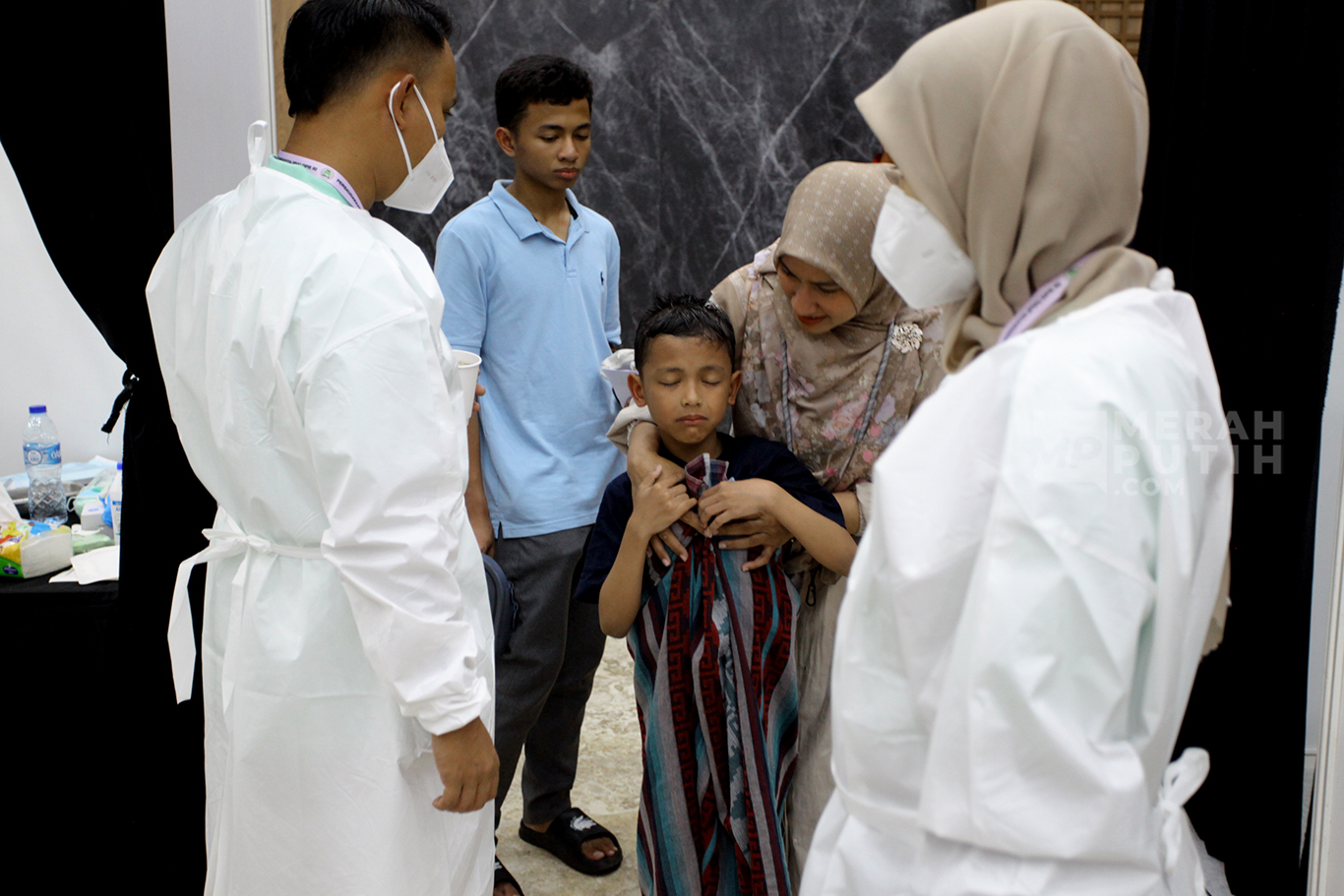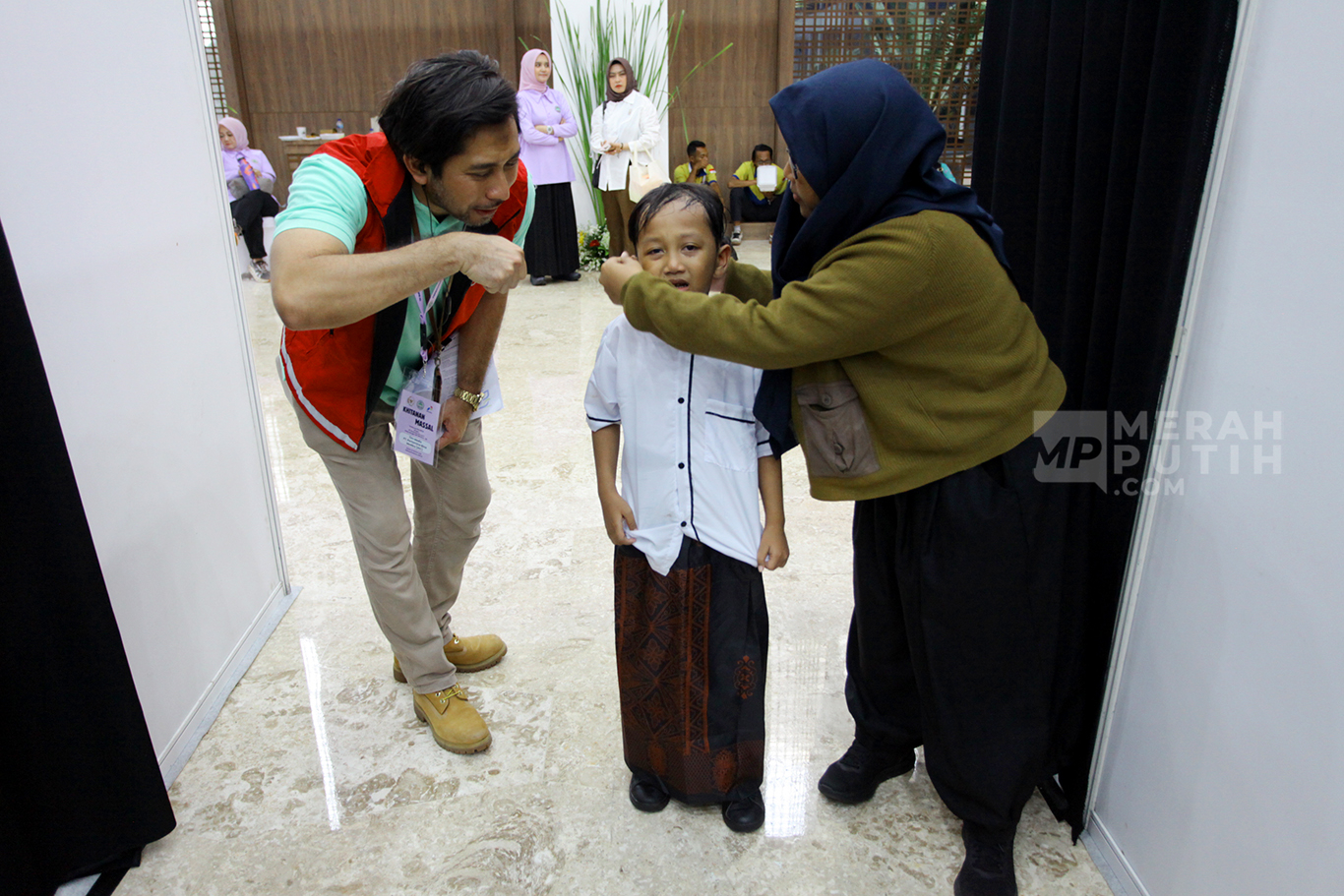 Merahputih.com - Seorang anak akan menjalani sunatan massal yang digelar Persaudaraan Istri Anggota (PIA) DPR RI di Gedung DPR RI, Jakarta, Kamis (9/10/2025).