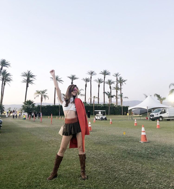 Dalam foto tersebut, di hari pertama festival Coachella, Nia tampil begitu fashionable dan seksi dengan hot pants jins, tanktop hitam, sepatu boots, dan topi keren.