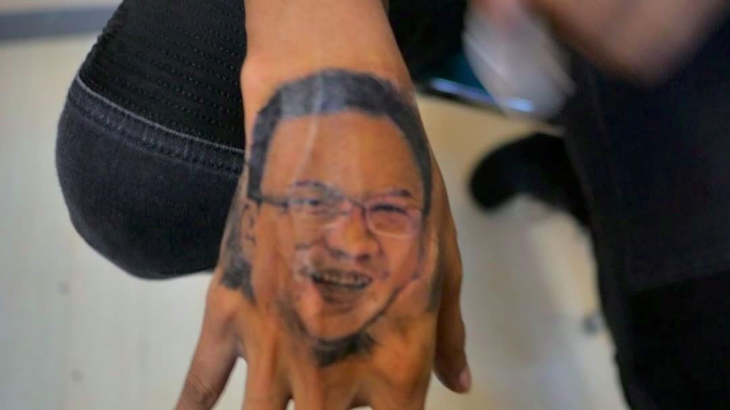 "Ini (tato Ahok) kalau digini-giniin, dihapus, permanen dan enggak akan hilang. Beda sama ini. Diginiin (dihapus) ilang, enggak tau nih orang bukan tapi ilang," kata Young Lex sambil menghapus dua gambar di tangannya.
