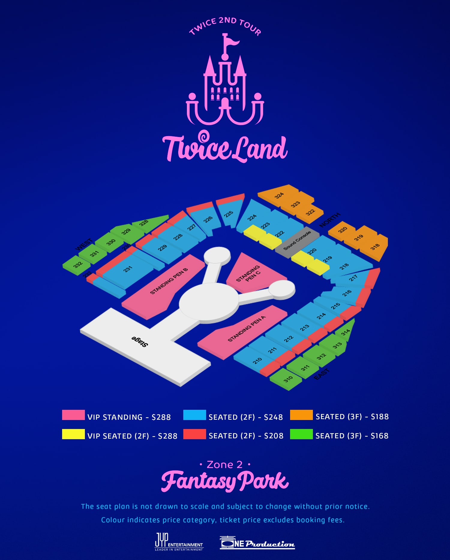 Tiket TWICELAND ZONE 2: Fantasy Park di Singapura dijual dari mulai sekitar Rp 3.900.000 untuk VIP hingga yang termurah yaitu sekitar Rp 2.300.000. Paket VIP akan mencakup 2 hadiah eksklusif dan 1 kesempatan undian berhadiah untuk sesi hi-touch dengan TWICE.