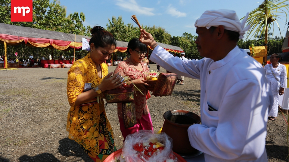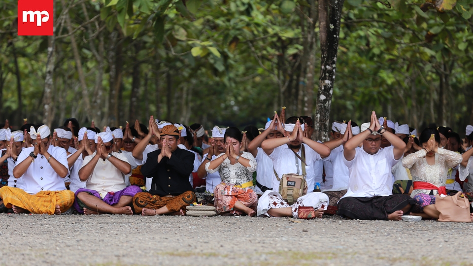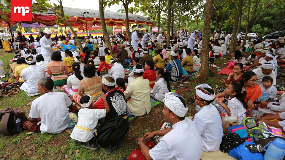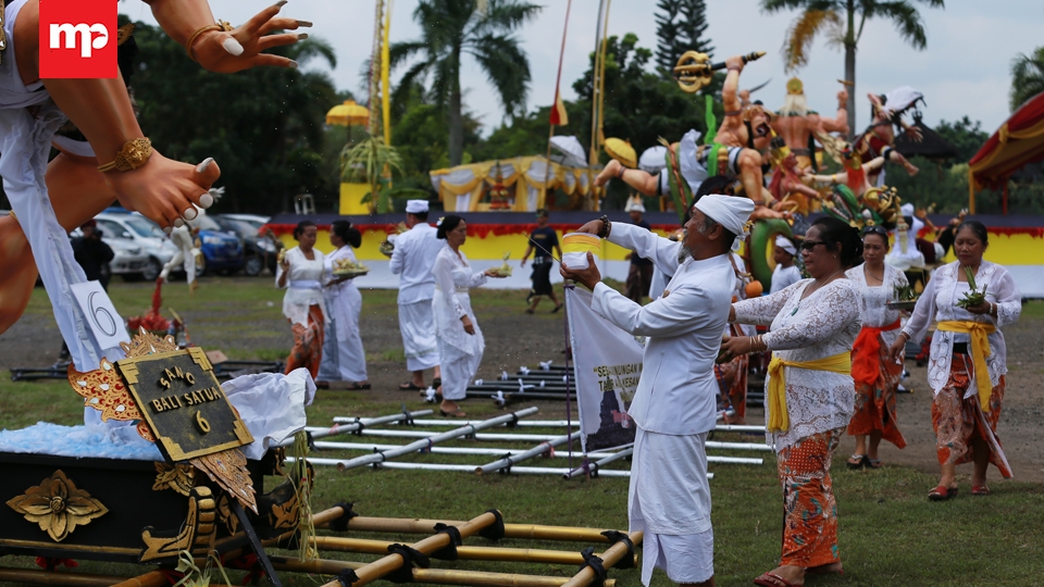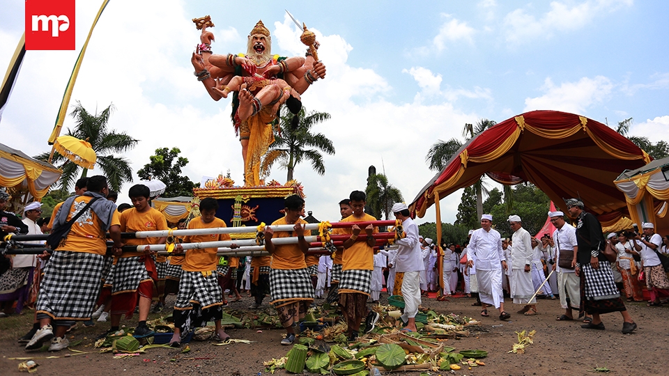 Sehari menjelang Nyepi ribuan umat Hindu se-Provinsi Banten mengikuti ritual Tawur Agung Kesanga di Pura Eka Wira Anantha Taman Serang, Banten, Senin, (27/3). Ritual tersebut bertujuan menetralisir energi negatif dari bhuta kala atau makhluk simbol keserakahan agar timbul keharmonisan sehingga memberi kemakmuran, kenyamanan, dan keamanan bagi seluruh masyarakat. Merahputih.com /Rizki Fitrianto.
