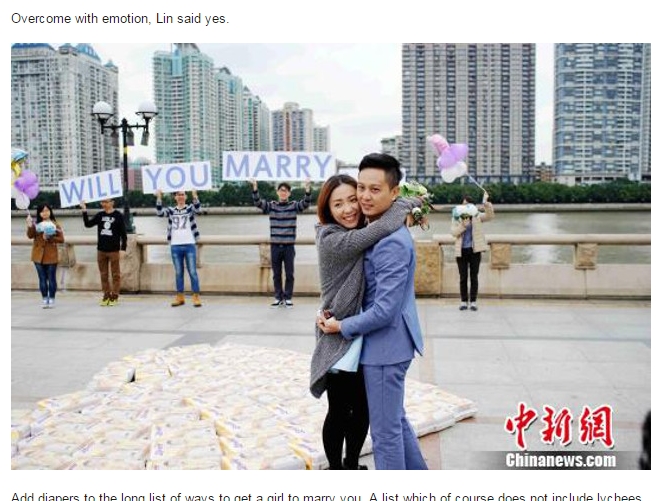 Lamaran unik dengan popok bayi. (screenshoot shanghaiist)
