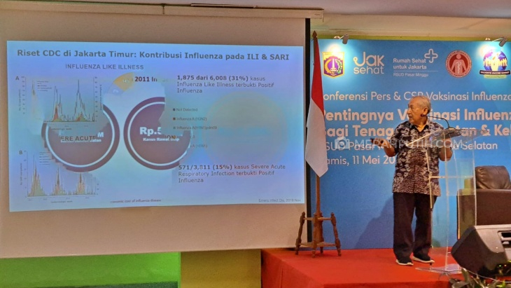 Pernyataan Prof. Djauzi tersebut disampaikan pada Konferensi Pers & CSR Vaksinasi Influenza untuk Tenaga Kesehatan di Aula Lantai 12 RSUD Pasar Minggu, Kamis (11/5). Hal itu didasari oleh data dari survei yang menunjukkan 70 persen tenaga kesehatan yang menderita influenza di Indonesia masih tetap bekerja, karena influenza kerap kali dianggap penyakit ringan.