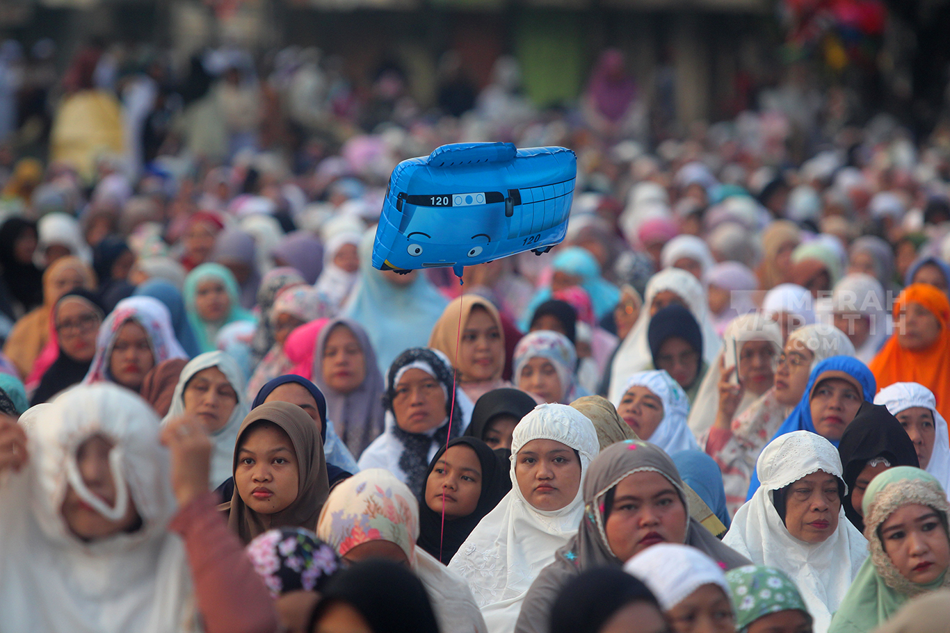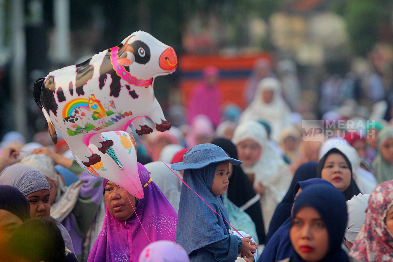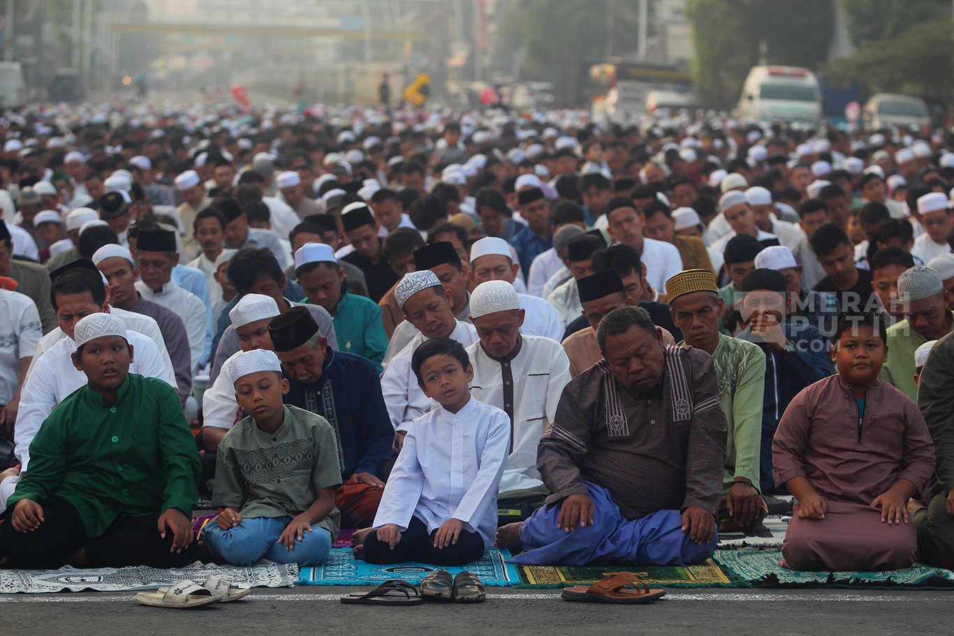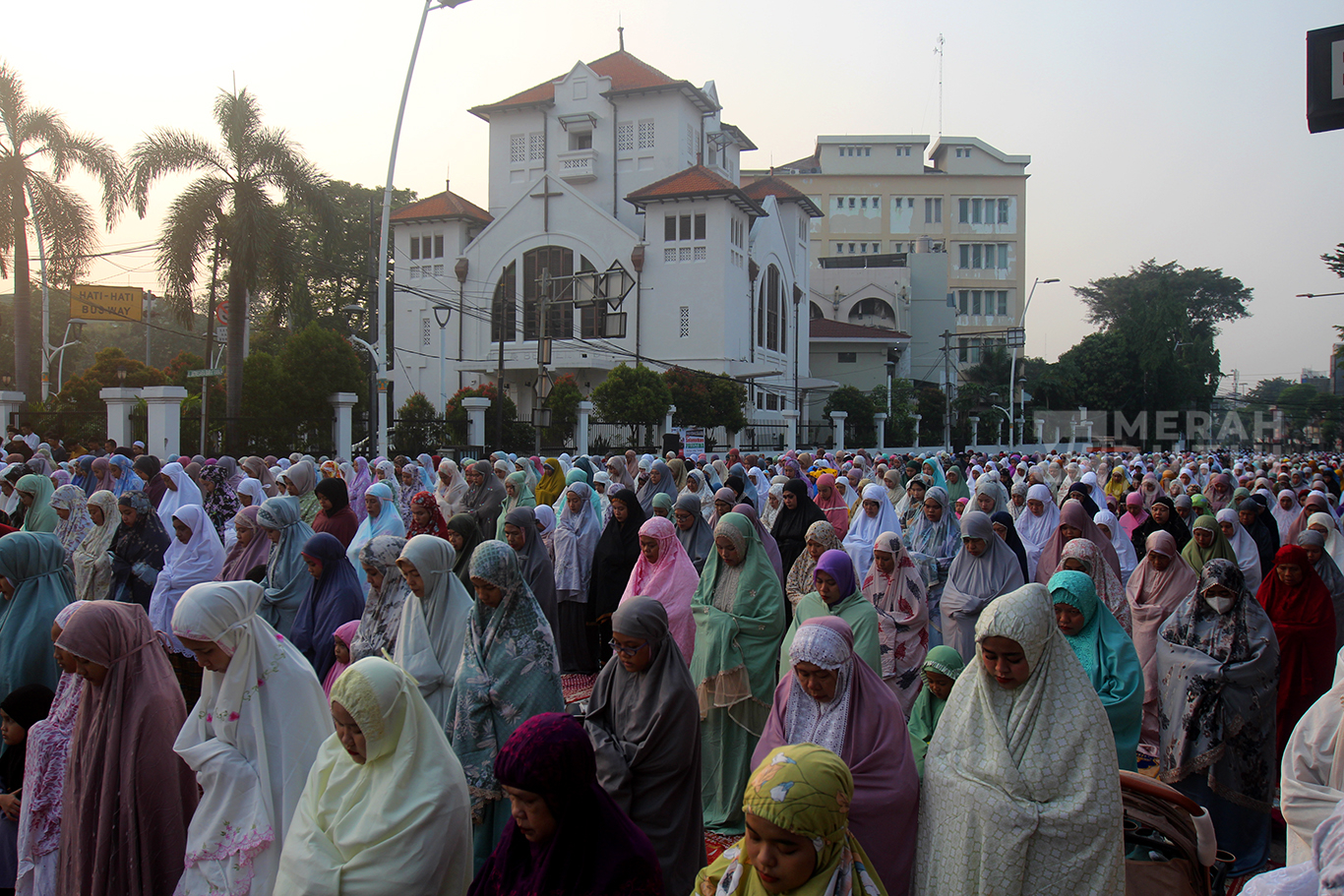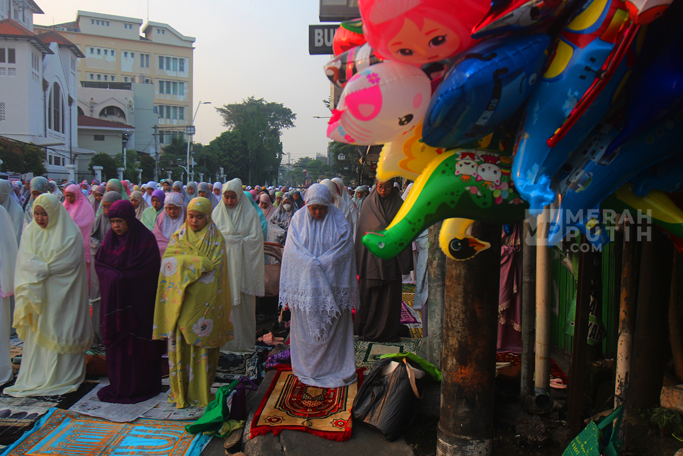MerahPutih.com- Ribuan umat muslim melaksanakan Salat Idul Adha 10 Zulhijjah 1445 Hijriyah secara berjama'ah di Jalan Jatinegara Barat dan Jalan Matraman Raya, Jatinegara, Jakarta Timur, Senin (17/6/2024).
