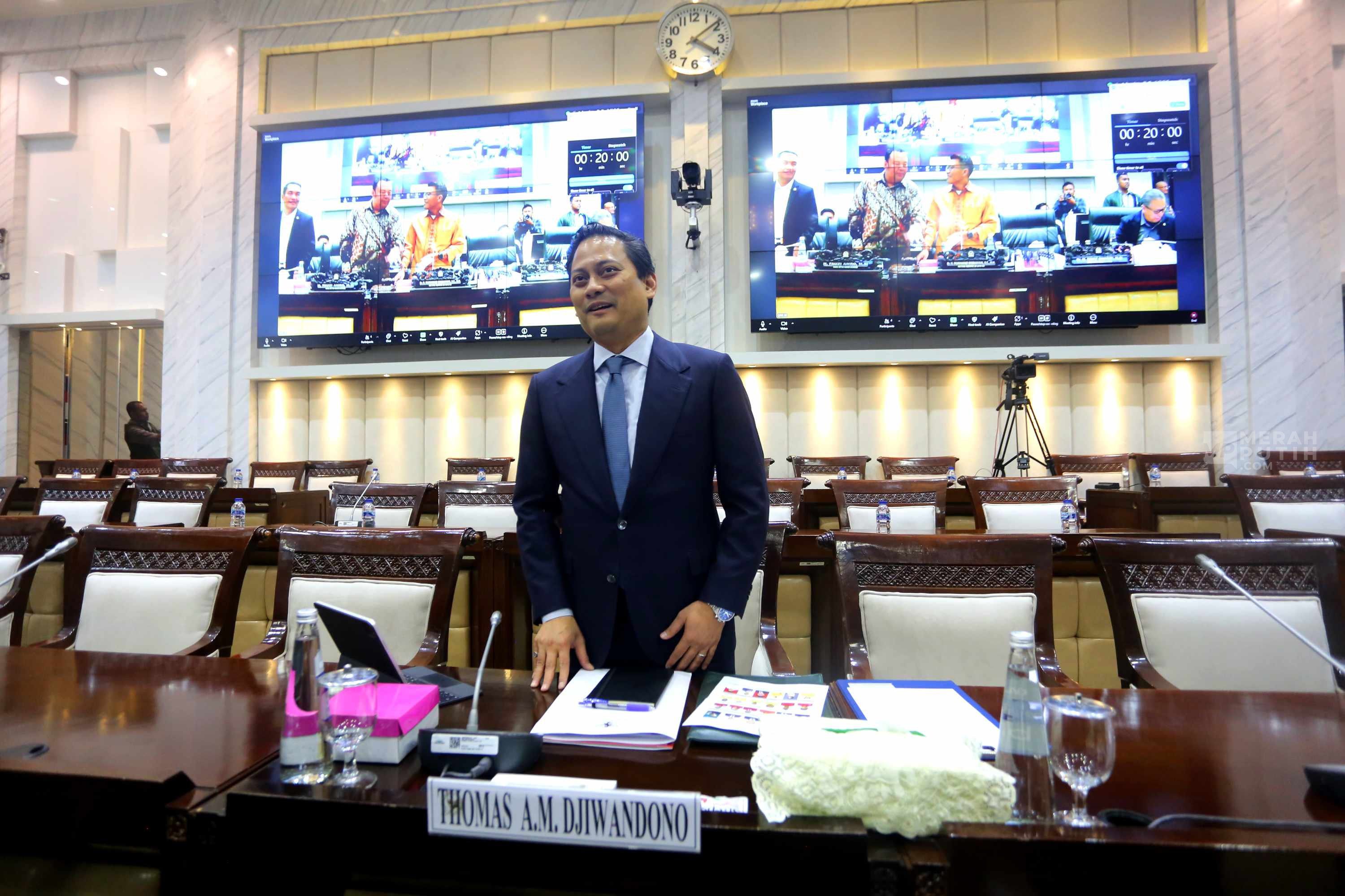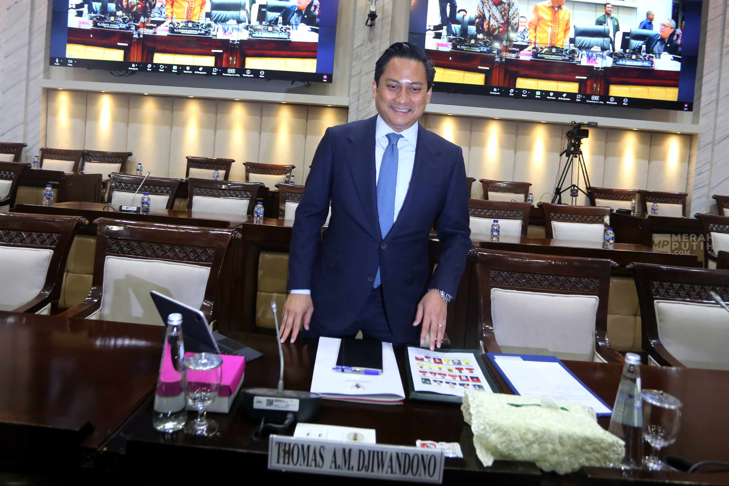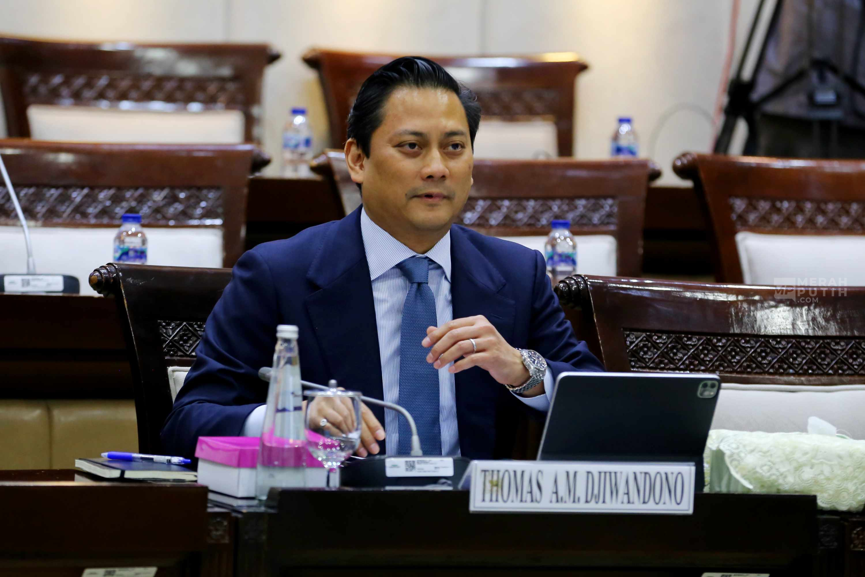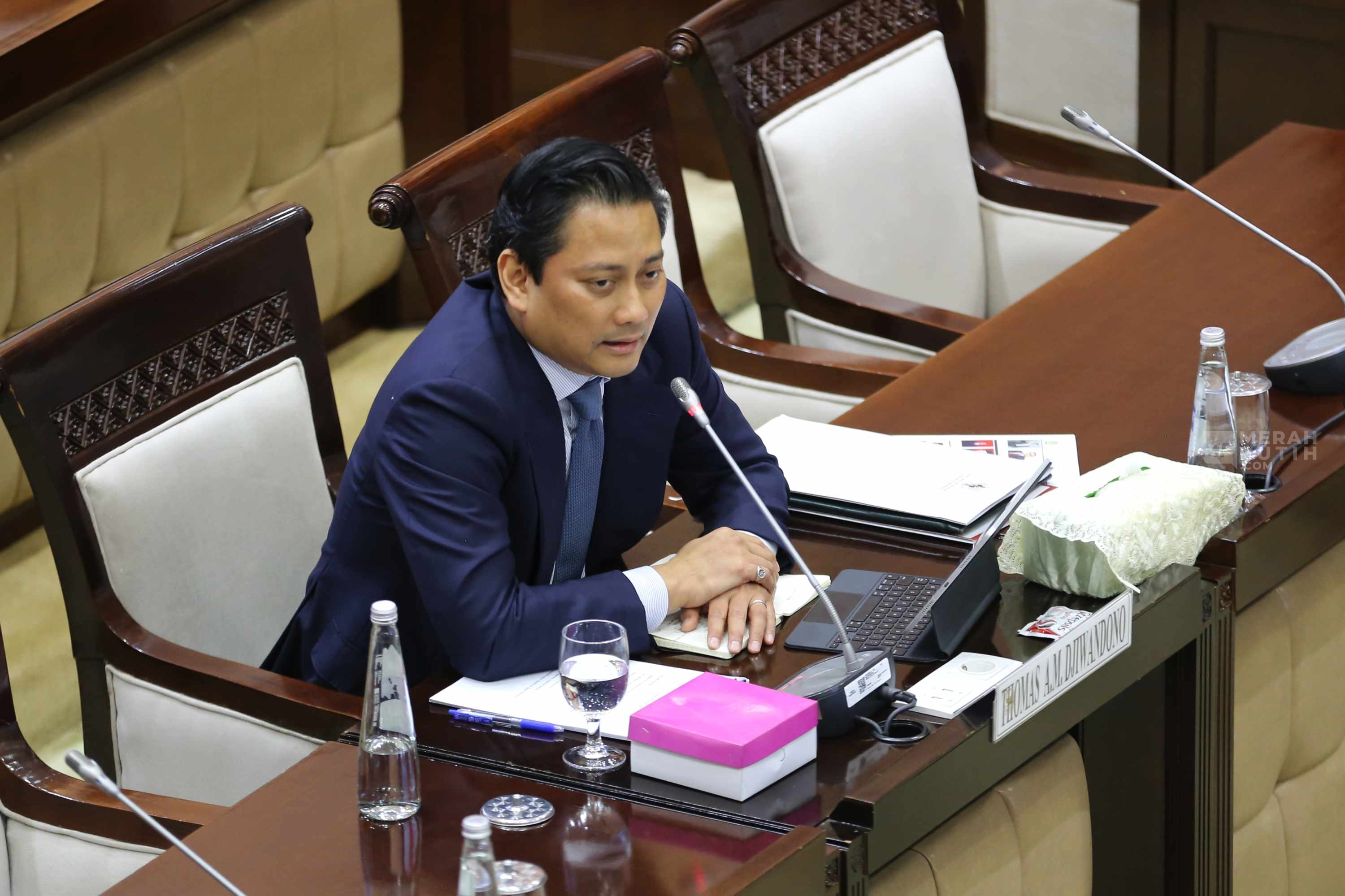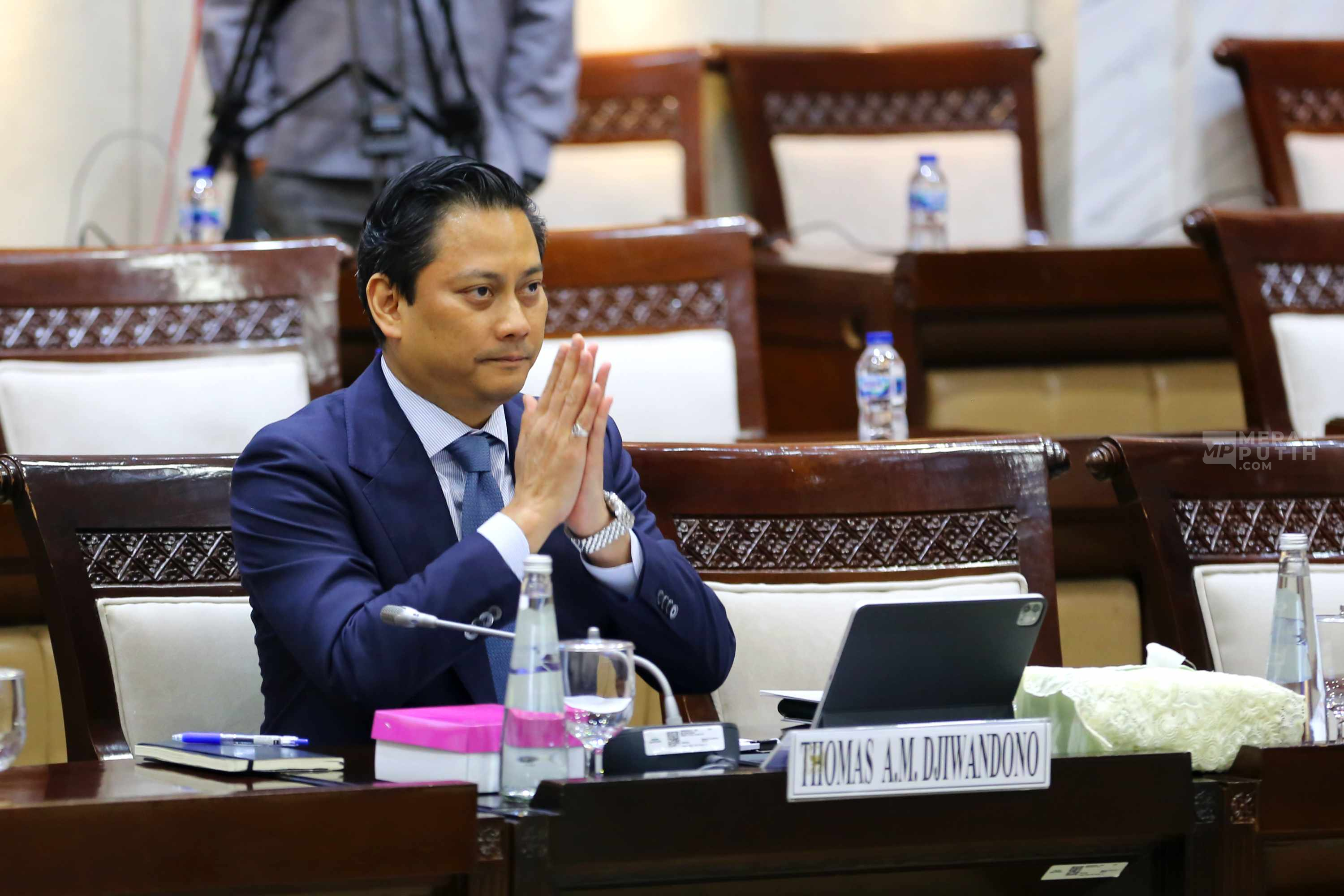 Merahputih.com - Calon Deputi Gubernur Bank Indonesia yang juga Wakil Menteri Keuangan (Wamenkeu), Thomas Djiwandono saat akan mengikuti uji kelayakan dan kepatutan (Fit and Proper Test) calon Deputi Gubernur Bank Indonesia di Kompleks Parlemen, Senayan, Jakarta, Senin (26/1/2026).