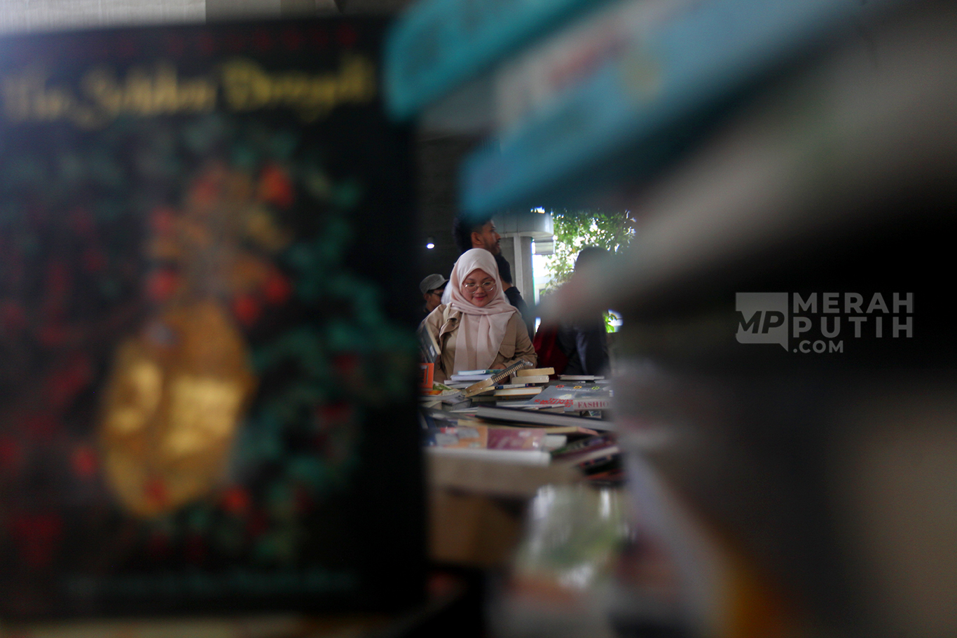 Merahputih.com - Pengunjung memilih buku yang mereka sukai, pada Bazar Buku "Millennia International Bookfair", yang digelar di Selasar Gedung Ali Sadikin Taman Ismail Marzuki (TIM), Jakarta, Sabtu (18/10/2025).
