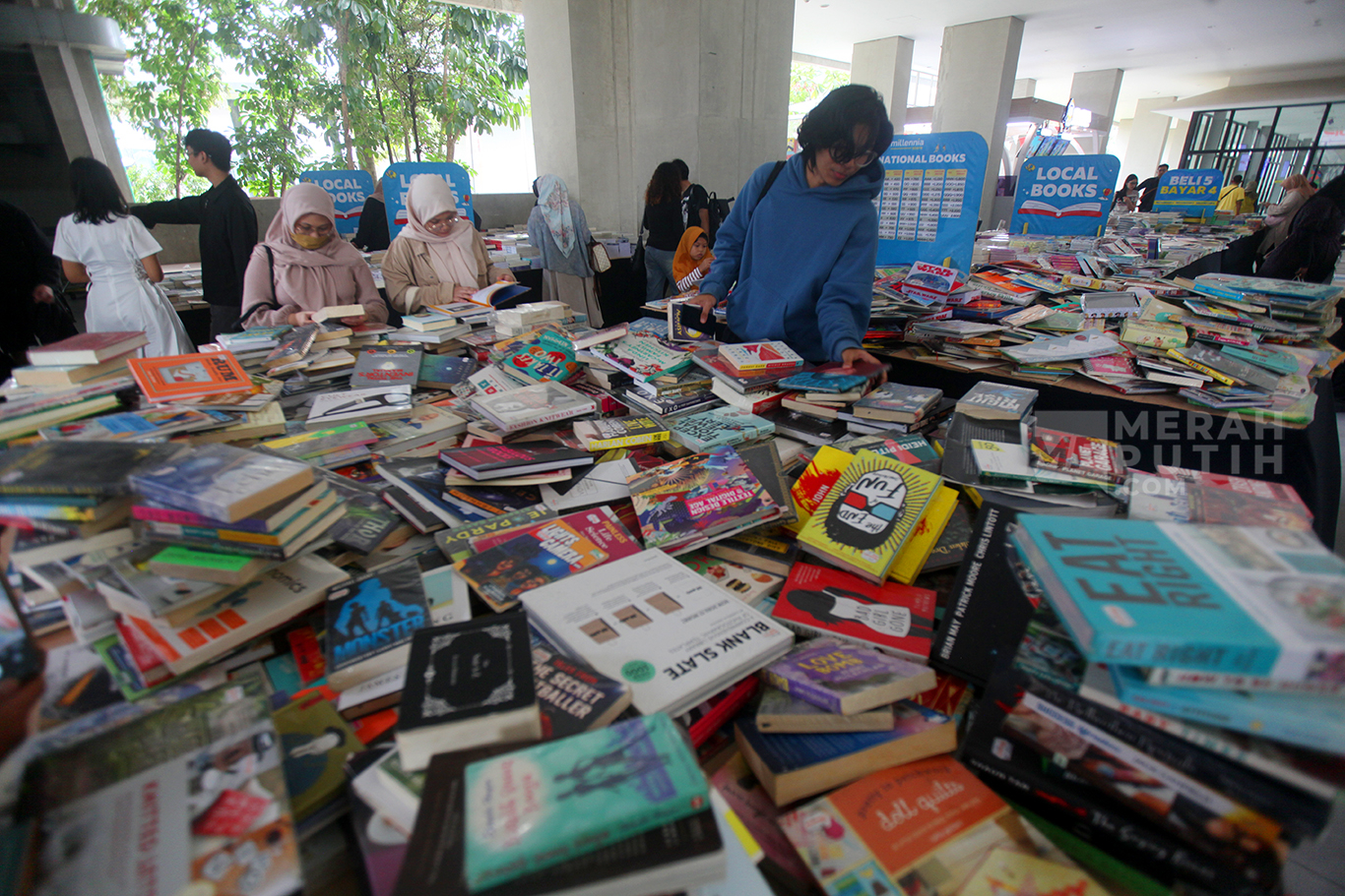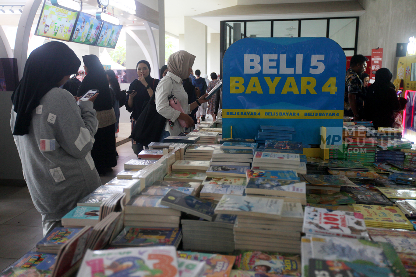 "Millennia International Bookfair" di Festival Literasi Jakarta 2025 yang diinisiasi Komunitas Bergerak Literasi Bergerak yang menawarkan aneka buku baik Lokal maupun Internasional yang ditawarkan dengan berbagai potongan, mengingat makin berkembangnya minat baca untuk peningkatan literasi. Salah satu program diskon yakni membeli 5 buku dengan membayar 4 buku serta potongan harga diskon hingga 20 persen. (MP/Didik Setiawan).