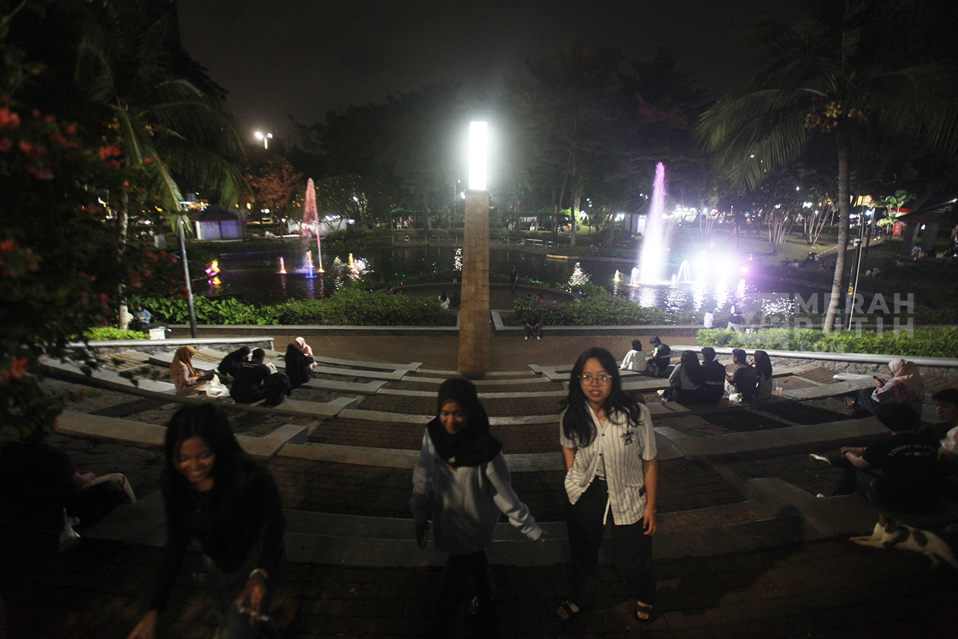 Warga Jakarta memanfaatkan taman yang beroperasi 24 jam untuk menikmati masa libur panjang akhir pekan pada hari ini. Diketahui Pemerintah Provinsi DKI Jakarta memberlakukan lima taman di Jakarta beroperasi selama 24 jam diantaranya Taman Ayodya, Taman Literasi Martha Christina Tiahahu Blok-M, Taman Langsat, Taman Menteng, dan Taman Lapangan Banteng. (MP/Didik Setiawan).
