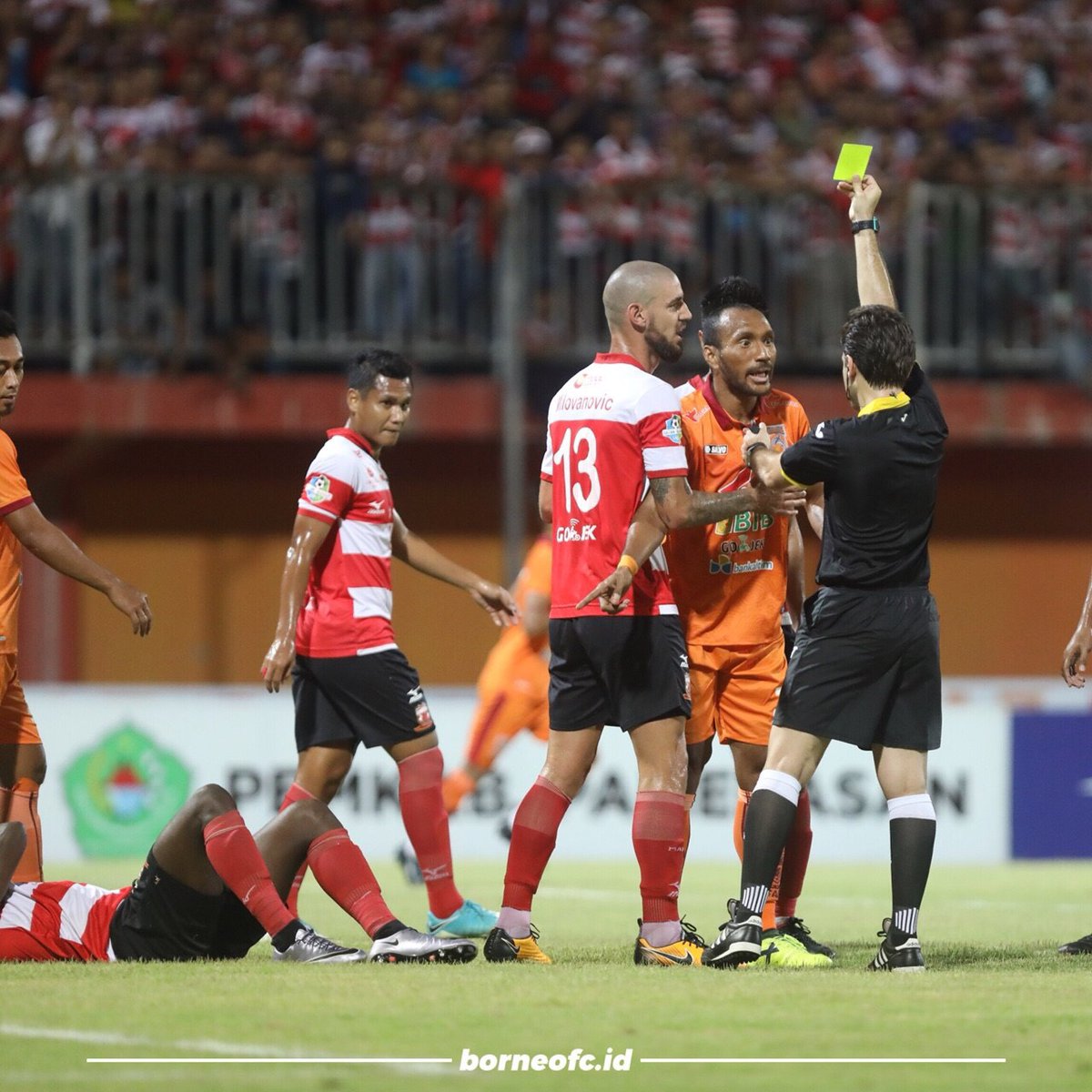 MerahPutih.com - Pertandingan lanjutan Liga 1 antara Madura United melawan Borneo FC di Stadion Gelora Ratu Pamelingan, Jumat (13/10) berlangsung dengan tensi tinggi.