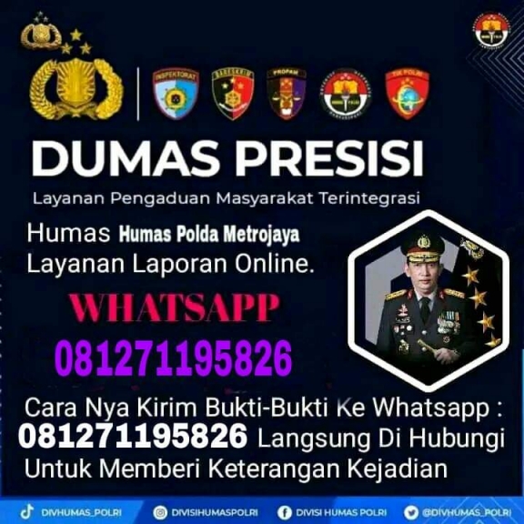 Dalam postingan gambar yang beredar di Facebook, tercantum aduan masyarakat dengan nomor hotline Humas Polda Metro Jaya di nomor 081271195826. Dalam unggahan itu bertuliskan 'Dumas Presisi, Layanan Pengaduan Masyarakat Terintegrasi. Humas Polda Metro Jaya Layanan Laporan Online.